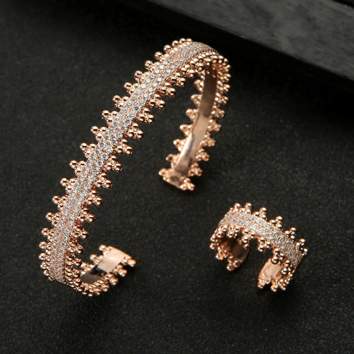 The Adina Jewelry Set is designed for every day, yet it's elegant enough to be worn for special occasions. This bangle and ring set is designed to be delicate and sweet. When you wear them together, they can bring you a chic and distinctive look. Now available in gold, silver & rose gold. From casual to dressy, this set makes selecting the perfect jewelry simple.