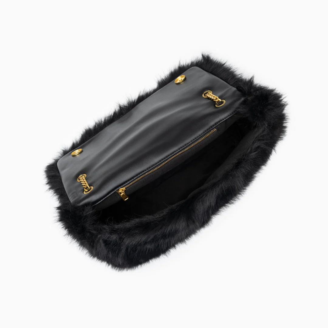 Wrap your essentials in pure softness with the Aitana Shoulder Bag, a standout piece designed to turn heads and spark compliments. With its fur-like plush texture and soft rectangular structure, this bag balances cozy charm with high-fashion flair. The chunky link chain strap adds a modern edge, while the magnetic flap closure keeps everything secure inside its spacious interior. The Aitana is your new go-to for plush perfection that feels as good as it looks! Exclusively available in black.