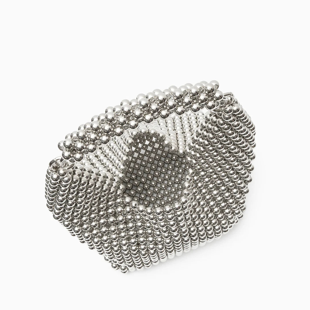 Make a bold statement with the Alexandria Beaded Handbag, where edgy design meets effortless style. This shiny, metallic beaded bag brings a modern twist to the classic hobo shape, offering a perfect blend of structure and fluidity. Designed for both fashion and function, the ring chain detail seamlessly links the comfortable handle to the bag’s body, adding a sleek, high-fashion touch. Though compact, it’s perfectly sized to fit your essentials, making it the go-to piece for nights out or everyday glam. Exclusively available in silver.