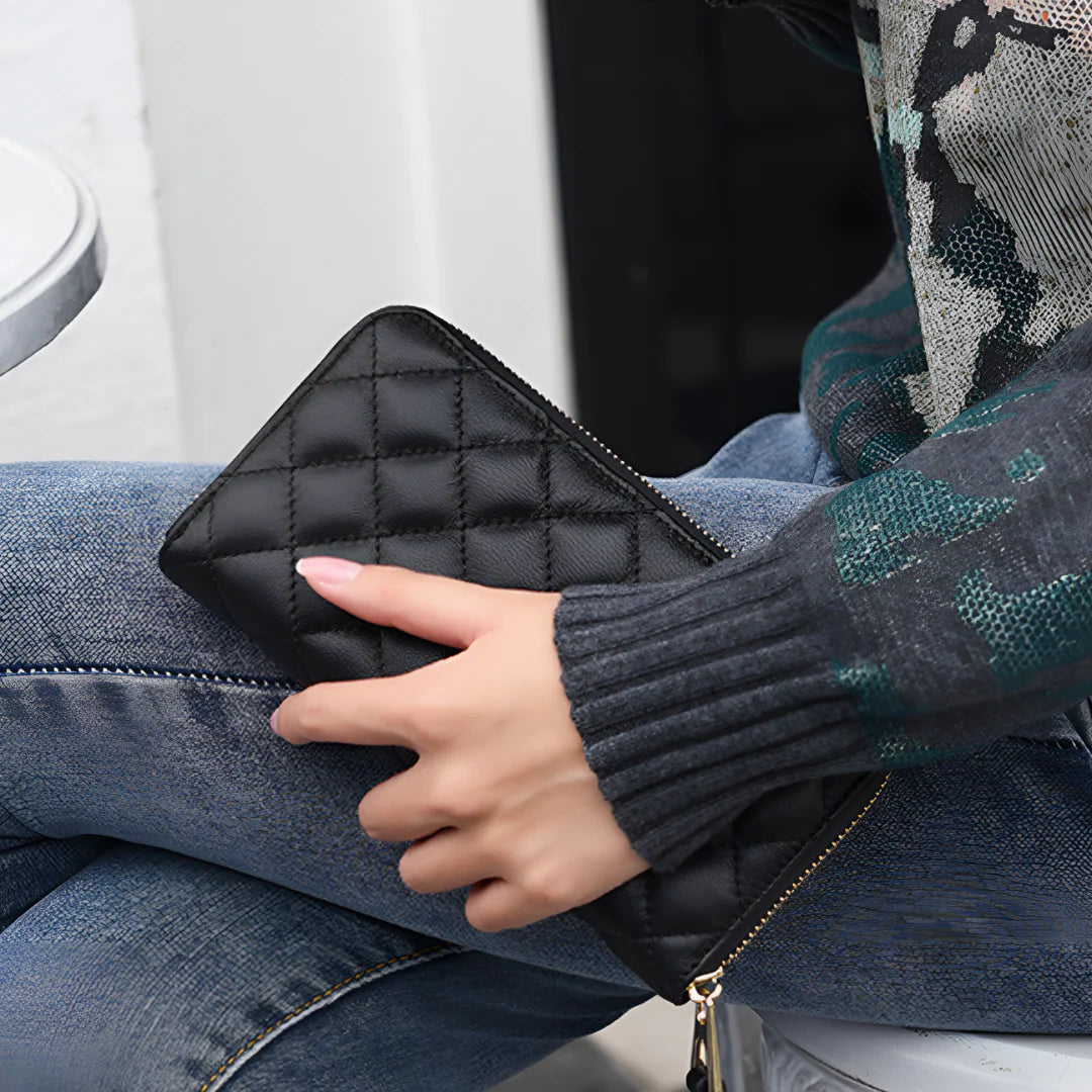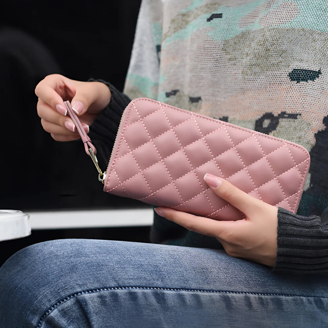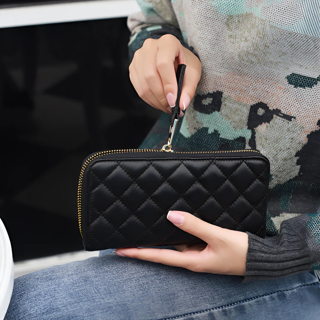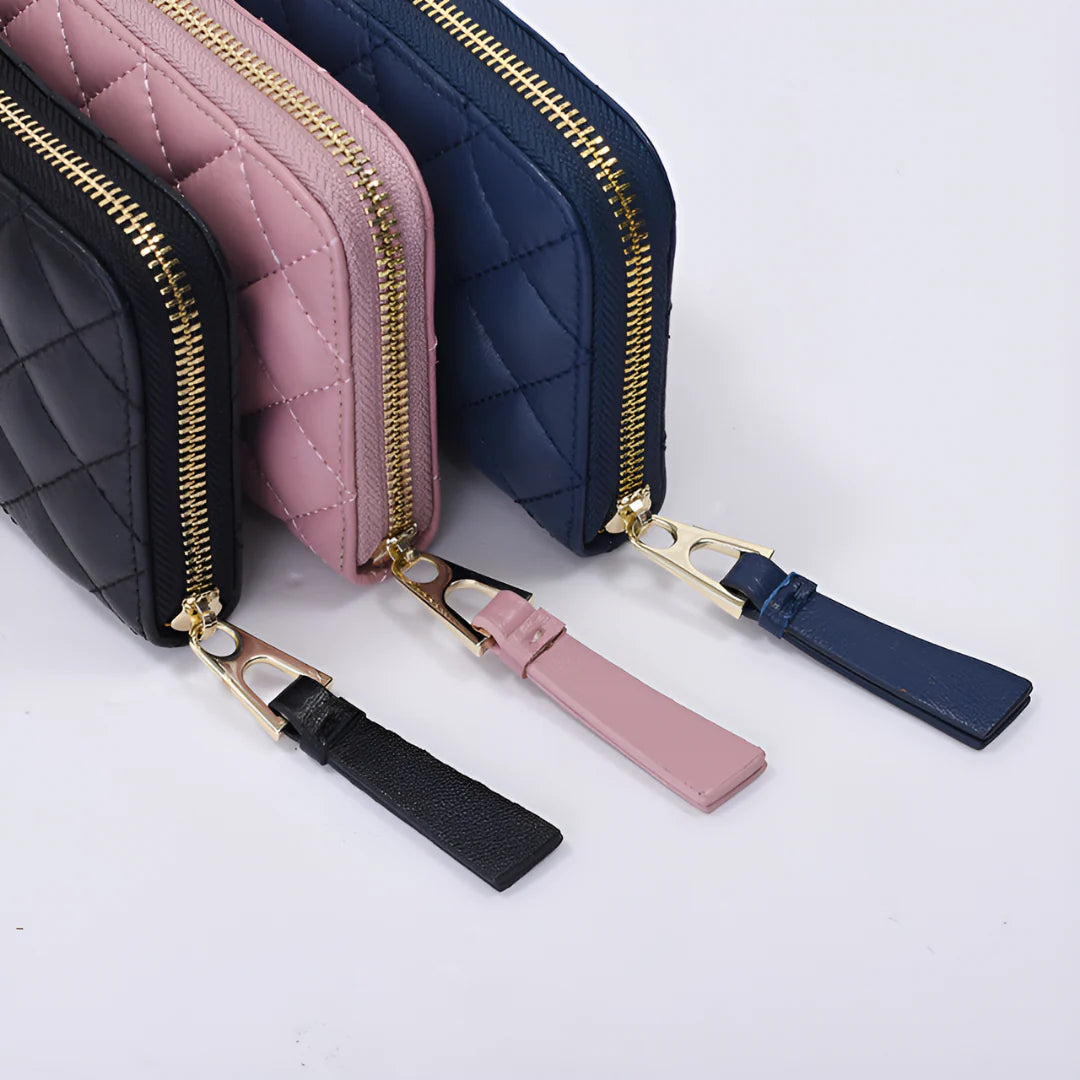 Timeless meets contemporary in the Amara Long Wallet. Crafted from supple genuine leather with signature quilted detailing, it evokes effortless sophistication. The full zip-around closure adds function to form, keeping your cards and essentials neatly secured. Whether slipped into your work tote or carried as a clutch, Amara is the definition of refined utility.