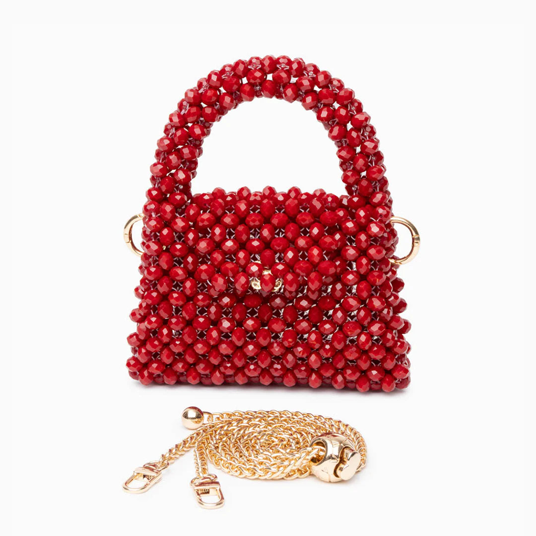 Make a bold entrance with the Austin Crystal Handbag, a true showstopper crafted for those who love luxury with a modern edge. This mini, square-shaped handbag is meticulously beaded to perfection, catching the light with every move. Designed to be as versatile as it is stylish, it features a handheld design with a detachable chain strap, allowing you to wear it your way. Though compact, it’s thoughtfully sized to fit all your essentials, making it the perfect companion for a night out or a special occasion. Exclusively available in red.