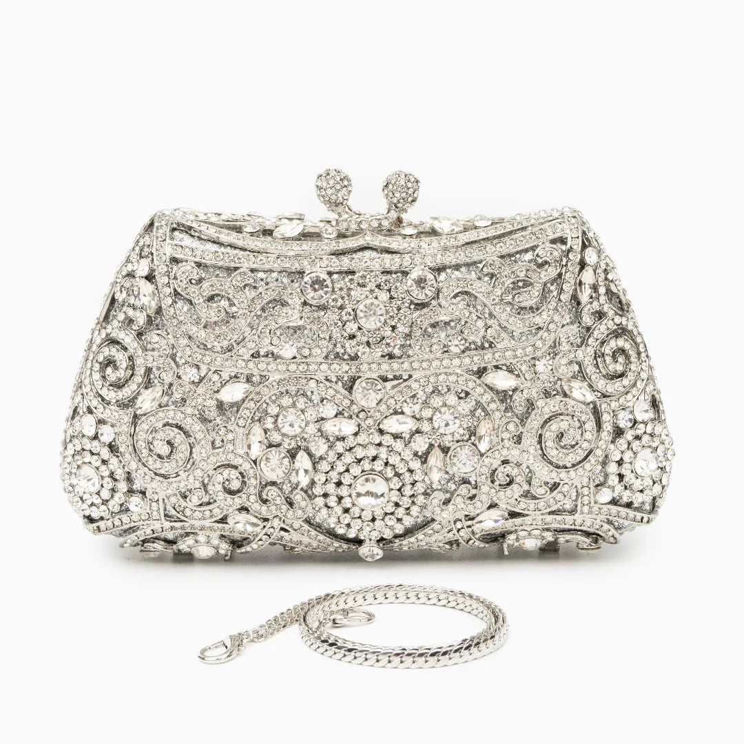 Presenting the Ayanne Crystal Covered Clutch Bag, an exquisite bag adorned with an intricately inlaid pattern of dazzling rhinestones. The sleek shape adds a modern touch to its timeless elegance, making it the perfect accompaniment for any occasion. Crafted with high-quality materials, this clutch ensures durability, promising to remain a cherished part of your wardrobe for years to come!