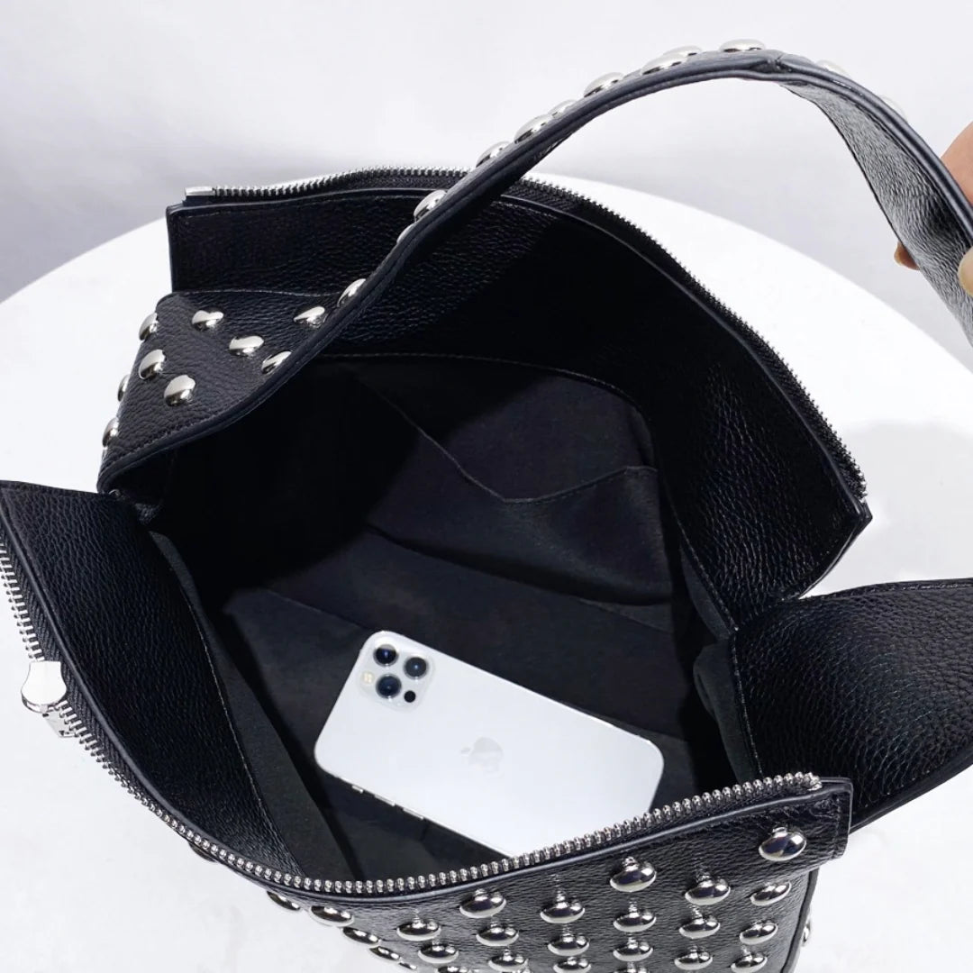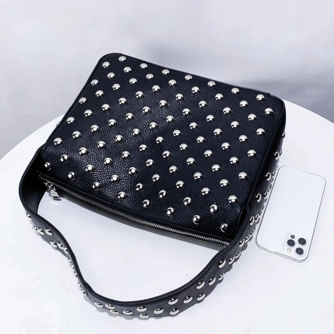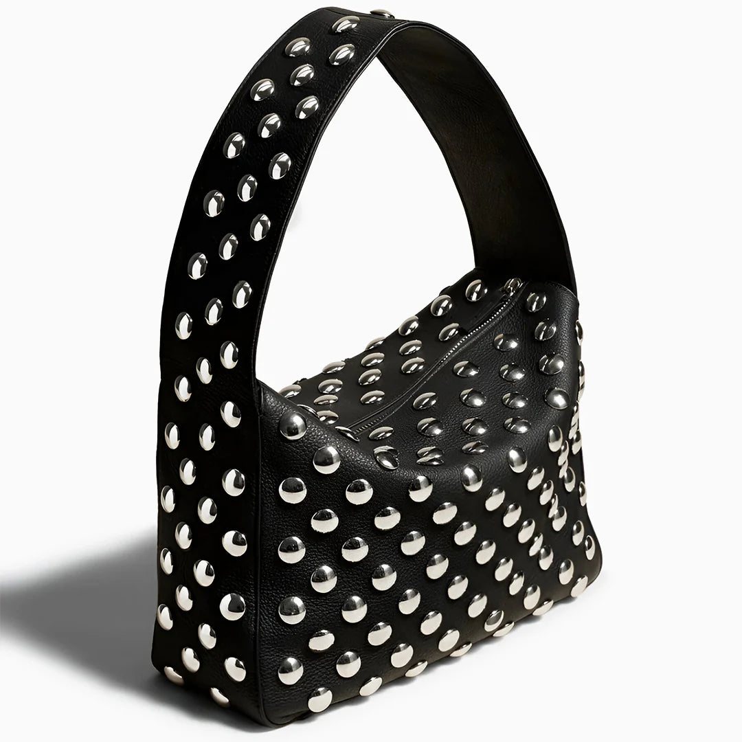 Turn heads with the Behati Shoulder Bag, a bold fusion of structure and sparkle. Designed in a sleek square shape with silver beads all over, this high-end statement piece radiates effortless edge and glamour. The wide strap ensures a comfortable underarm fit, while the spacious interior keeps your essentials within reach. Secured with a durable zipper closure, this bag is both functional and stylish. Exclusively available in black.