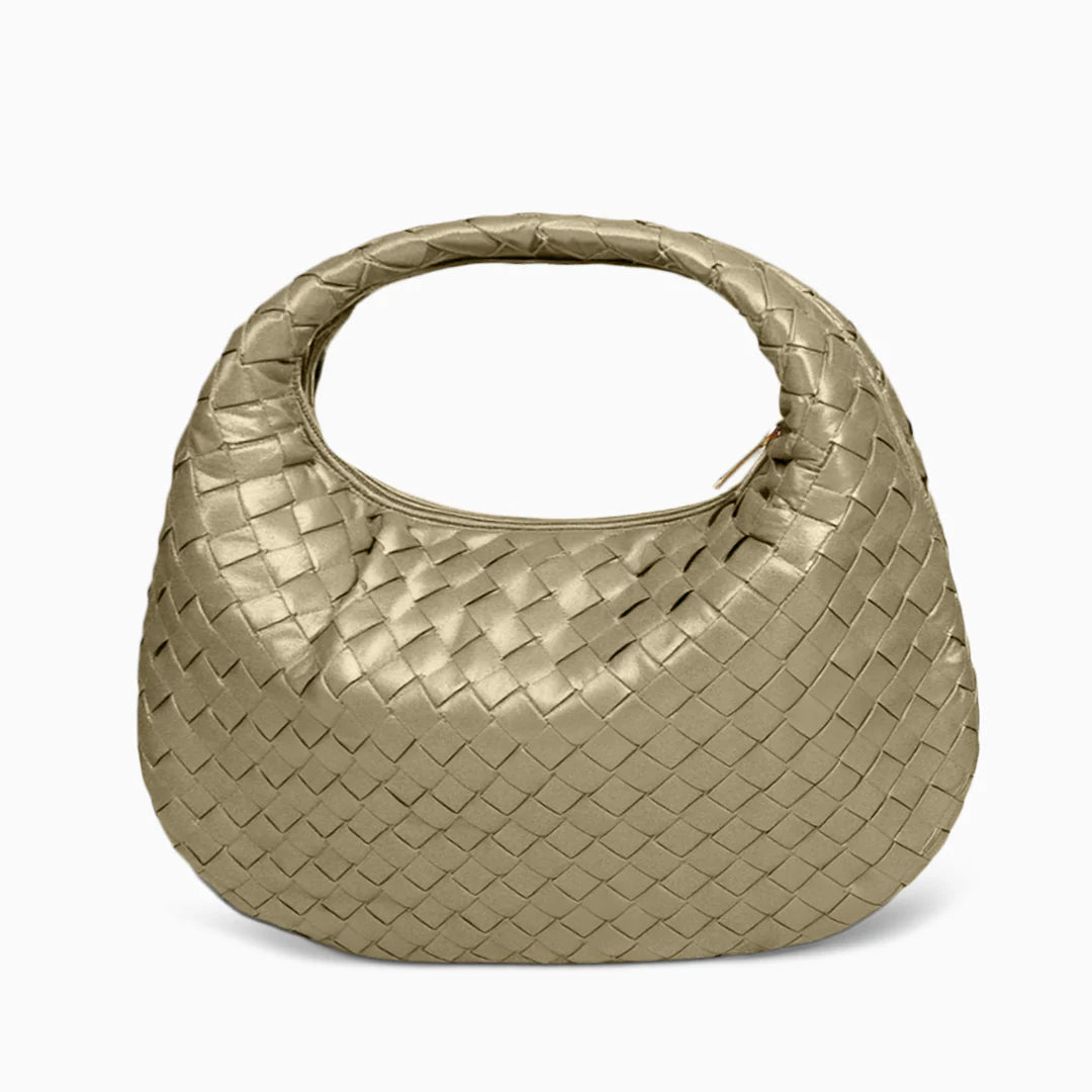 The Bianca Handbag is the epitome of sleek sophistication with its stylish dumpling silhouette and exquisite woven design. Crafted from high-quality materials, this handbag features a glossy finish that adds a luxurious touch, effortlessly elevating any outfit. Its compact yet spacious interior fits all your essentials, making it both functional and fashionable. Perfectly versatile, this bag matches a wide range of outfits, making it the ultimate go-to piece. Now available in black, purple, khaki, and green.