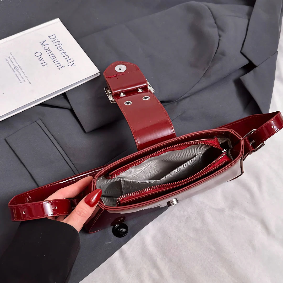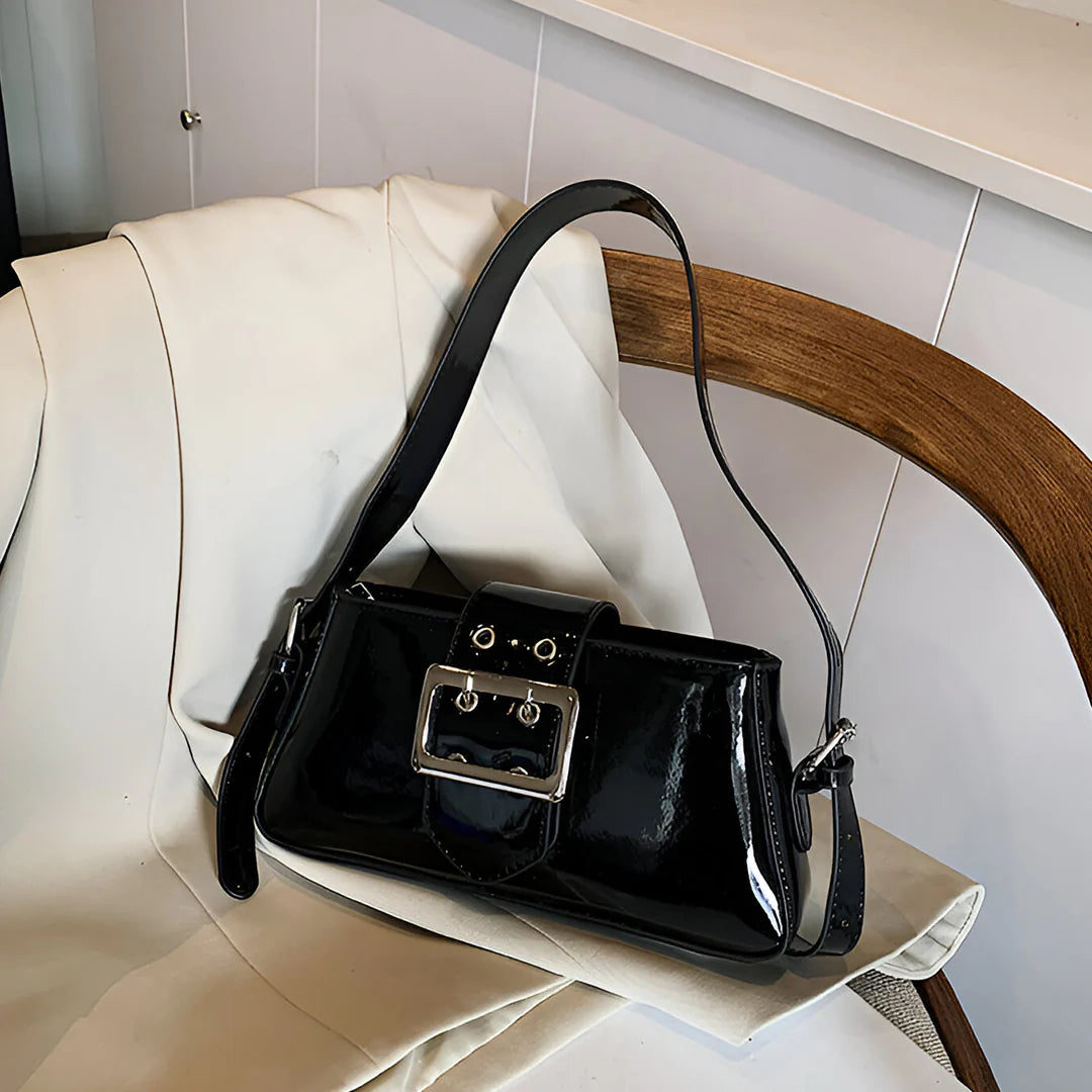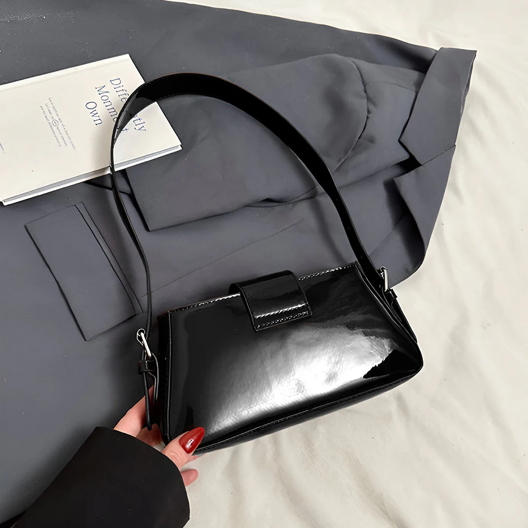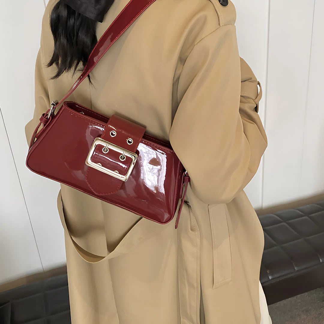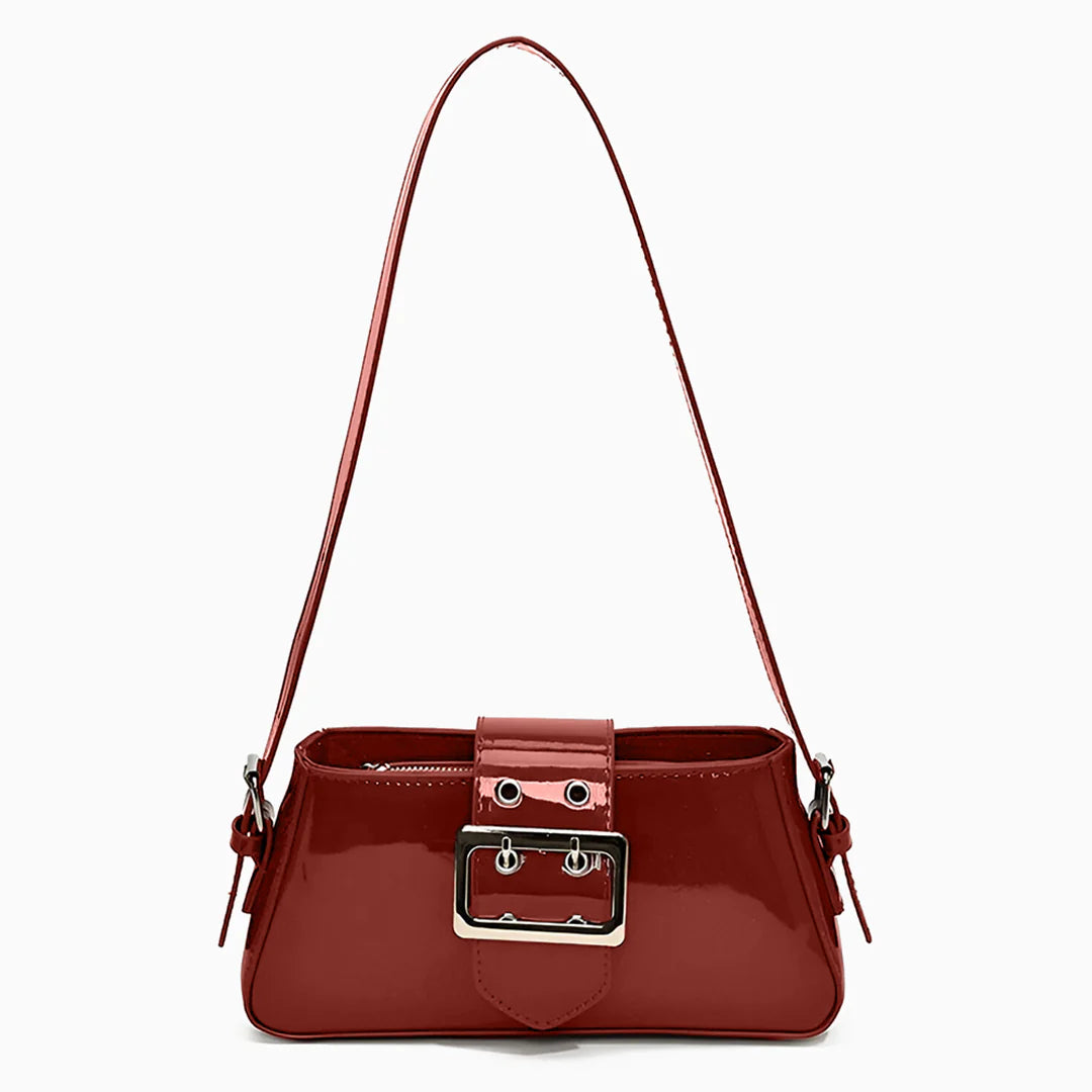 Shine effortlessly with the Billie Shoulder Bag, a metallic underarm bag designed to turn heads. Featuring a glossy exterior and a chic buckle flap, this bag brings the perfect balance of trendy and classy. The secure zipper closure keeps your essentials safe, while its versatile, high-quality design makes it easy to style for any occasion. Whether you're dressing up for a night out or adding a statement piece to your everyday look, Billie is the go-to bag for effortless glamour. Now available in black and burgundy.