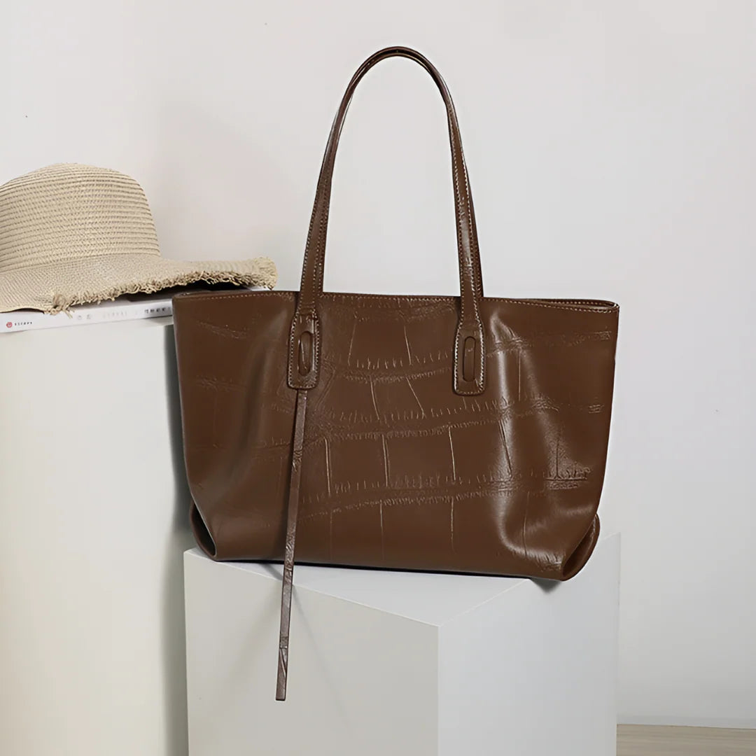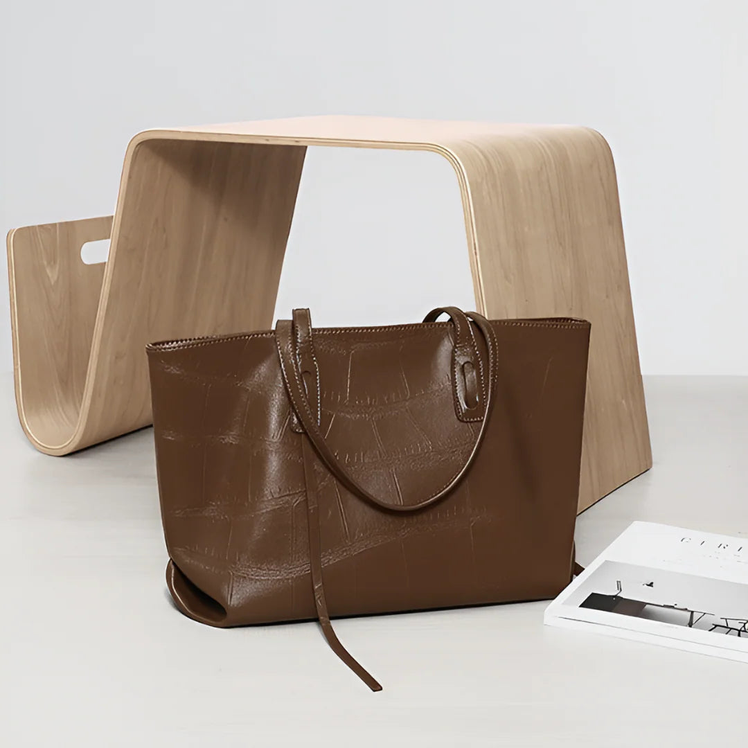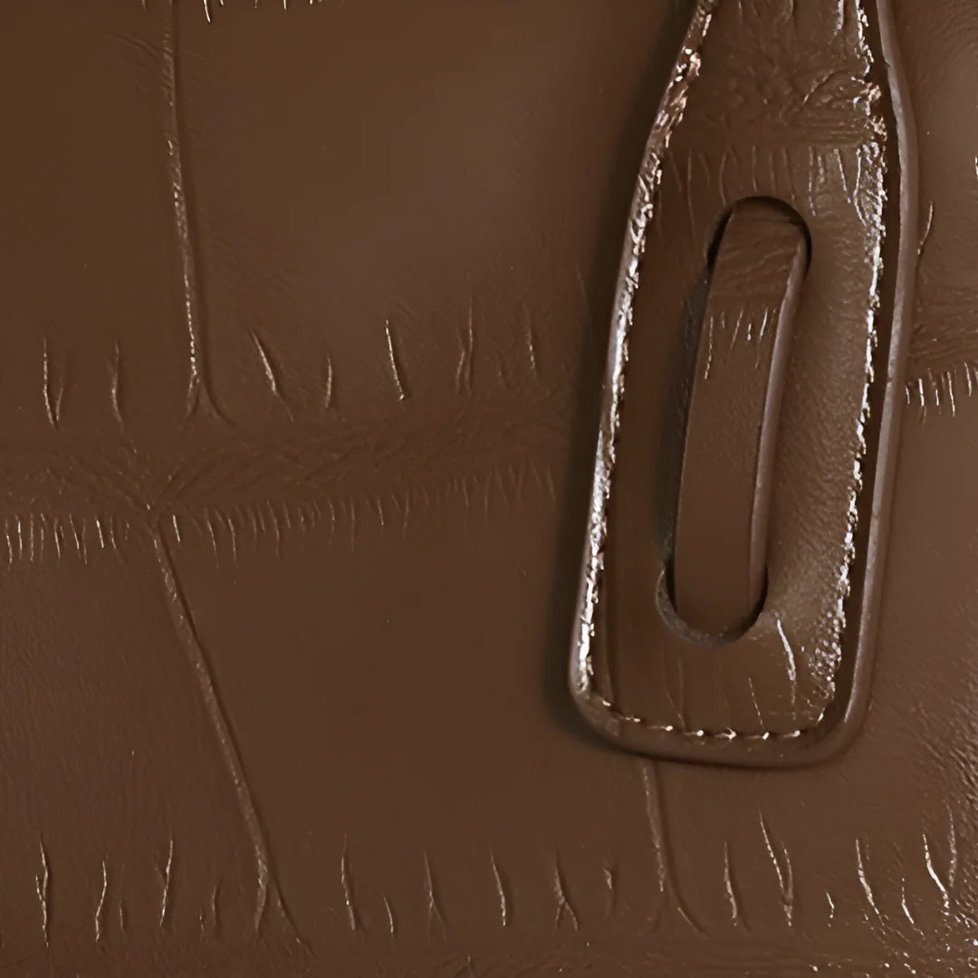 Where form meets function, the Capri Dune Shoulder Bag emerges with quiet confidence. Its rich espresso hue and subtle croc texture exude timeless elegance while the structured body offers everyday utility. Designed for modern lifestyles, it slips seamlessly over your shoulder and carries all your essentials in style. The clean lines and elongated handles make it a sophisticated choice from commute to weekend escape.