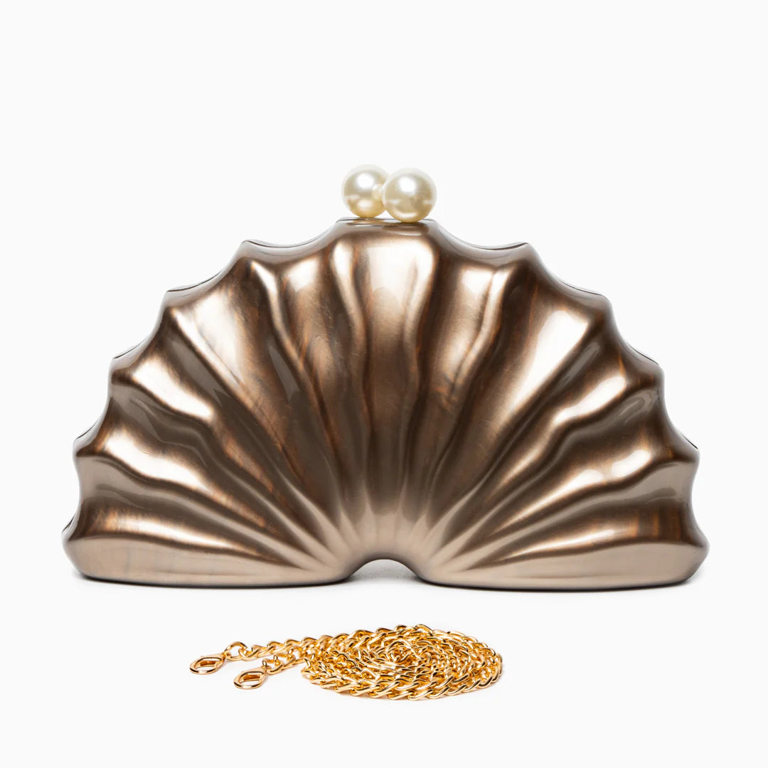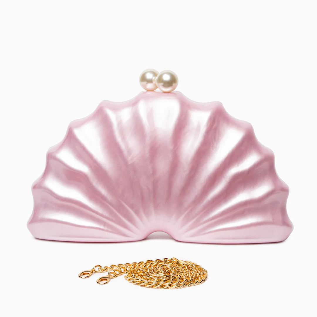 Elevate your style with the Chloe Shell Clutch Bag, a true statement piece that’s as quirky as it is chic. Crafted from high-quality acrylic, this fan-shaped shell design boasts a glossy finish that adds a playful yet polished touch to your ensemble. The pearl clasp closure brings an elegant detail to this lightweight and functional bag, while the cleverly designed interior fits all your essentials with ease. The Chloe Clutch is the perfect companion to match many outfits and make a lasting impression!