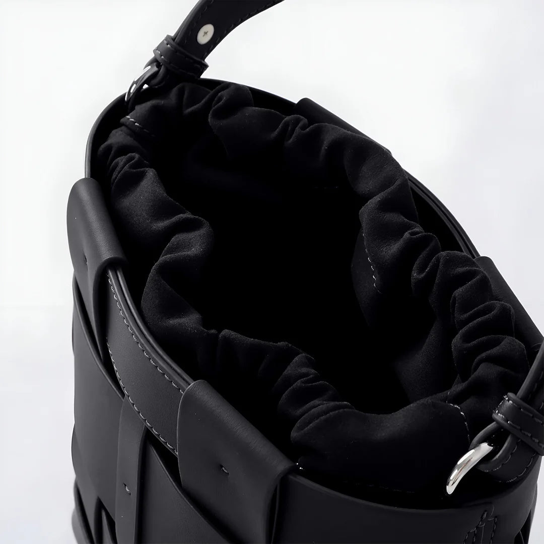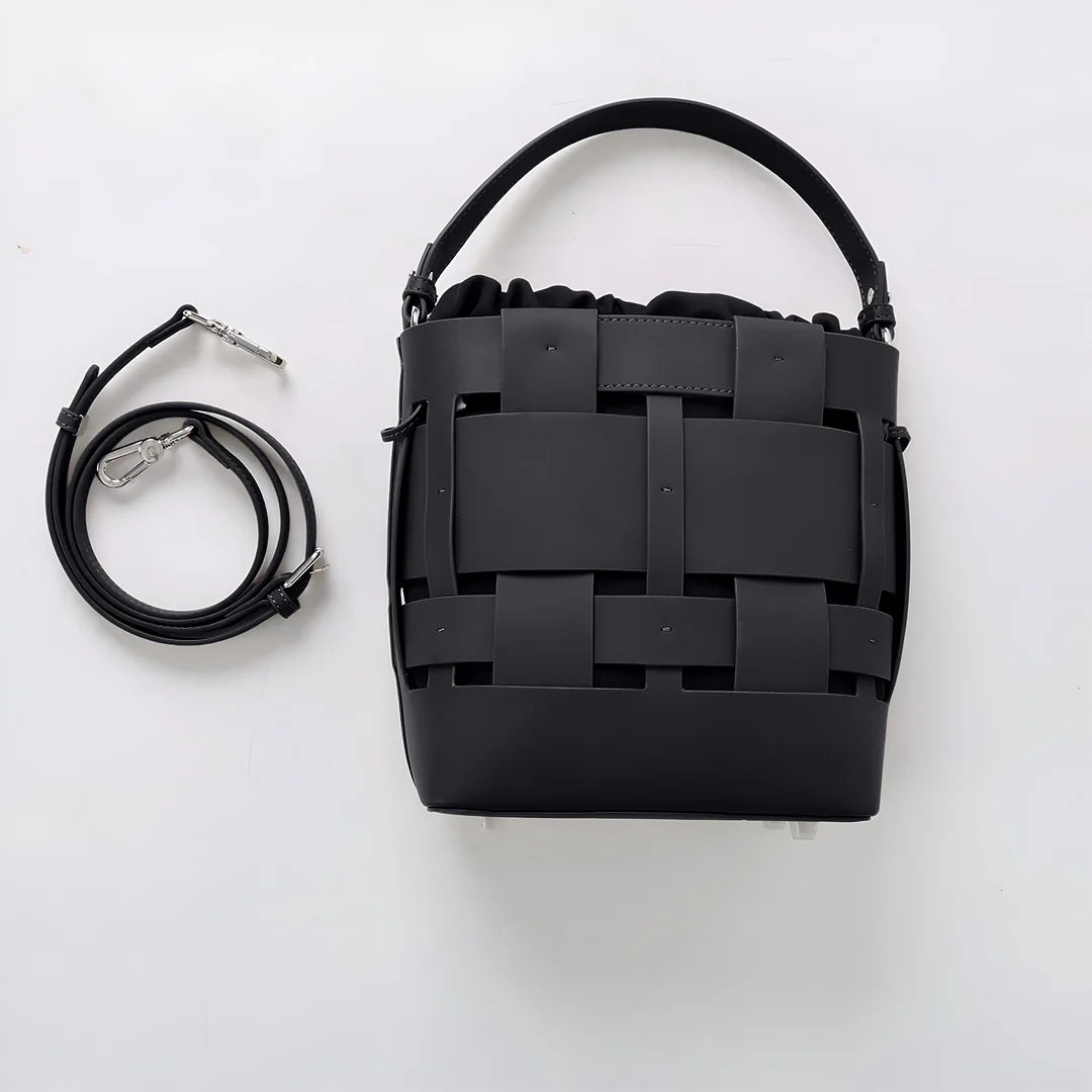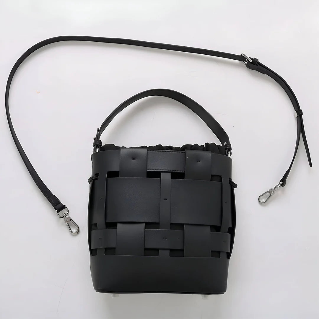 The Claire Crossbody Bag blends artisanal charm with modern sophistication. Crafted from genuine leather, its intricate woven exterior creates a striking, textured look. Inside, a soft drawstring pouch keeps essentials secure, adding a relaxed yet refined touch. Designed for versatility, it features a detachable strap, allowing you to carry it as a handbag or wear it crossbody. Chic, structured, and effortlessly stylish, the Claire is perfect for those who love understated luxury with a bold design twist. Exclusively available in black