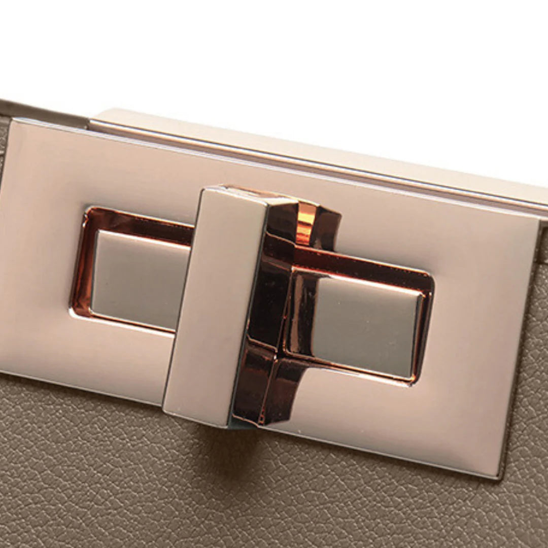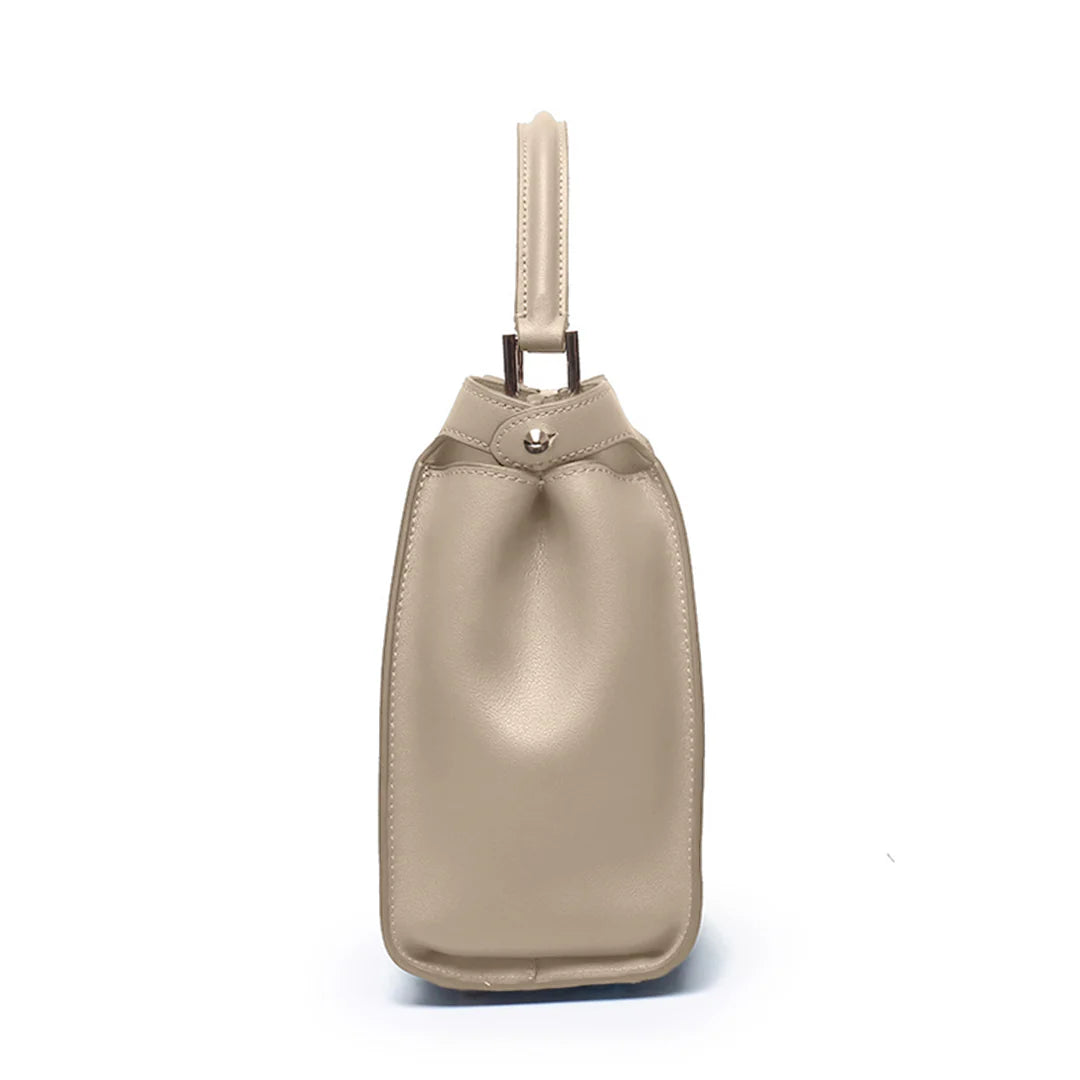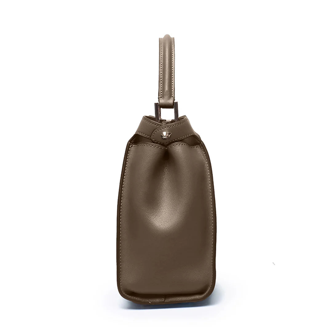 A study in modern refinement, the Cleo Structured Tote Bag is crafted in smooth genuine leather and designed to elevate your daily rhythm. Its sleek lines and softly contoured frame balance structure with softness, while the top handle and detachable strap offer styling versatility. A polished clasp adds a touch of architectural detail. Compact yet spacious, it holds essentials with quiet confidence. From desk to dinner, this satchel is an effortless wardrobe signature.