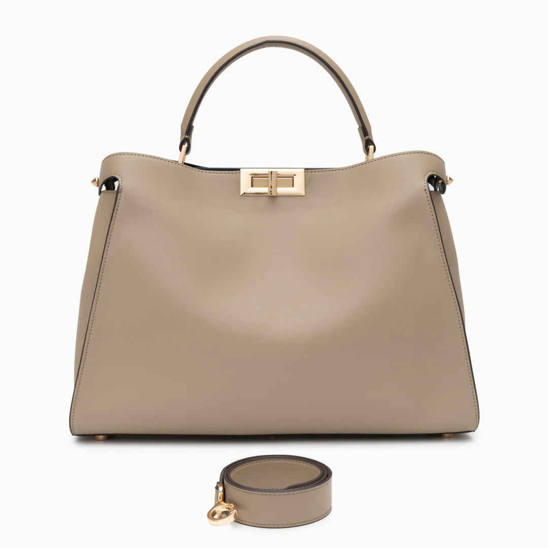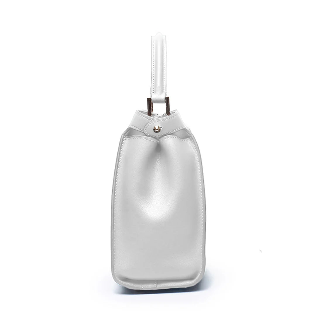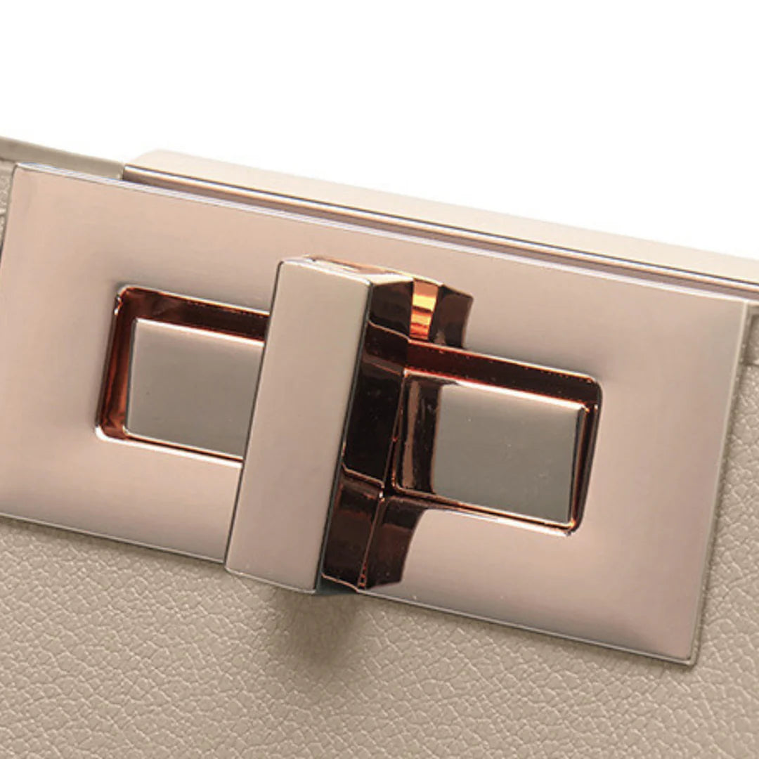 A study in modern refinement, the Cleo Structured Tote Bag is crafted in smooth genuine leather and designed to elevate your daily rhythm. Its sleek lines and softly contoured frame balance structure with softness, while the top handle and detachable strap offer styling versatility. A polished clasp adds a touch of architectural detail. Compact yet spacious, it holds essentials with quiet confidence. From desk to dinner, this satchel is an effortless wardrobe signature.