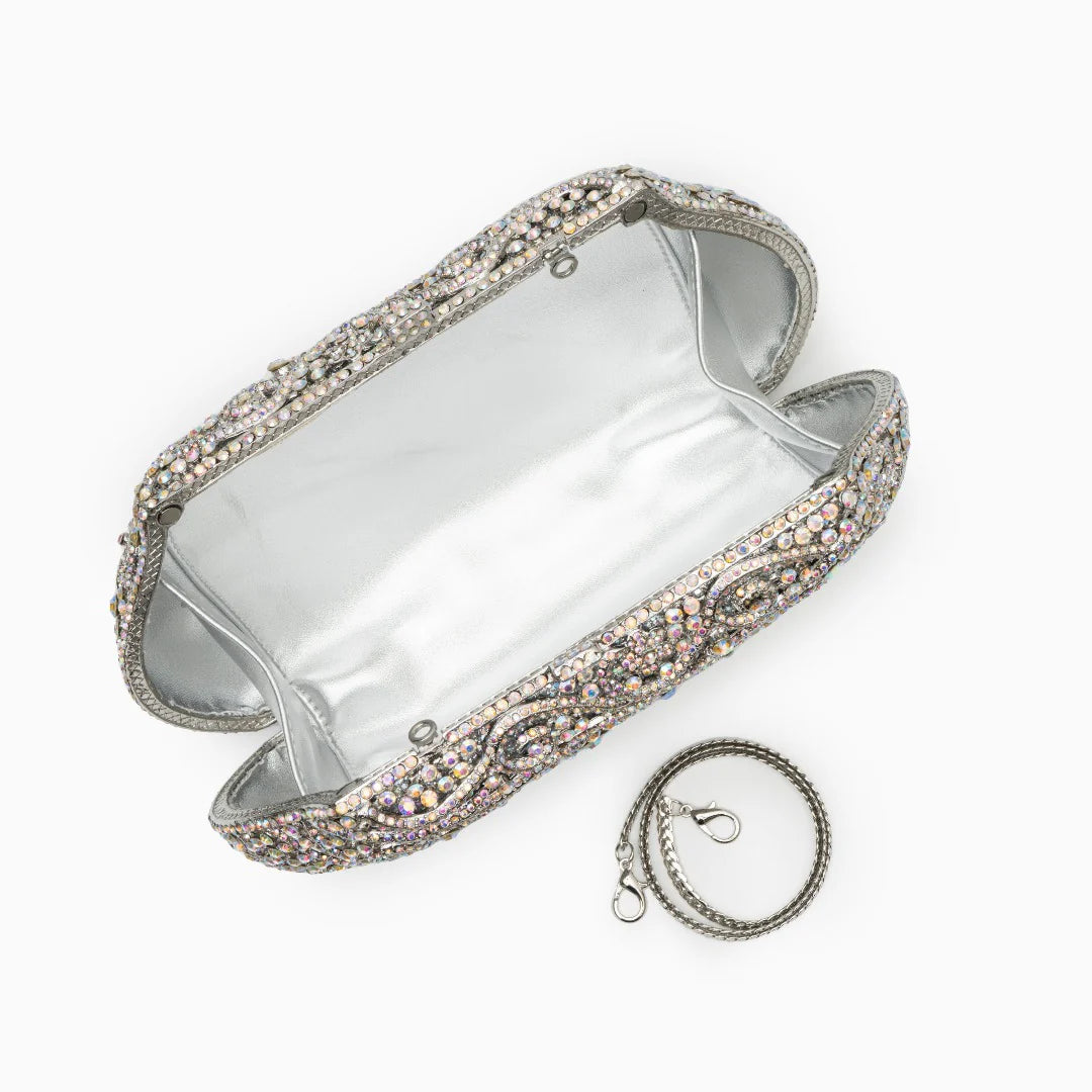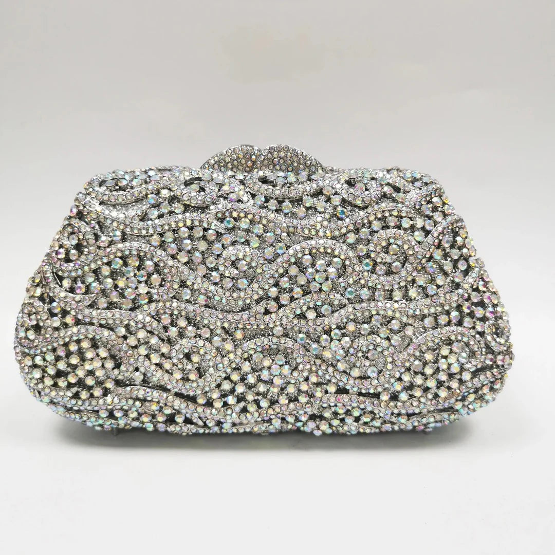 The Juliet Rhinestones Clutch Bag showcases exquisite patterns with a stunning rhinestone mosaic that mesmerizes with their intricate beauty. Its sleek structure adds a touch of refinement to your ensemble. With ample space to fit all your essentials, it's as functional as it is gorgeous, making it a versatile addition to your wardrobe. With its adaptable design, it effortlessly complements a wide range of outfits, making it the perfect companion for any occasion.