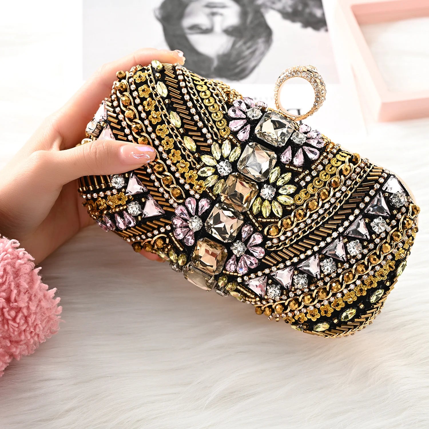 The Cynthia Beaded Embroidery Clutch Bag is a must-have for every stylish woman! With its stunning bead pattern and intricate detailing, this bag exudes sophistication. This bag offers enough space to store your essentials for the night. Lightweight yet bold, this clutch bag matches any attire effortlessly. Exclusively available in coffee gold.