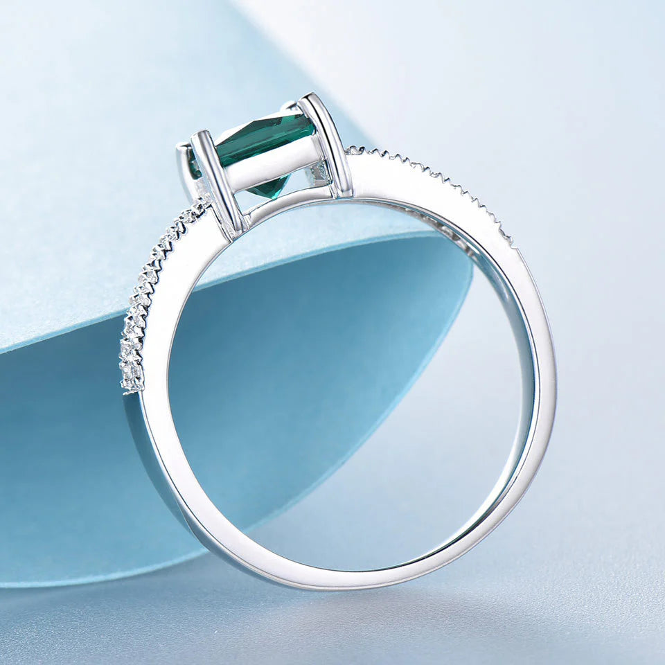 The sister of our bestselling Earnest Ring is here, this time with a double band for that added sparkle. This Emerald Earnest Double Band Ring is set in 925 Sterling Silver with a rectangular cut emerald stone accentuated with tiny white gems on the band. Exclusively available in silver.