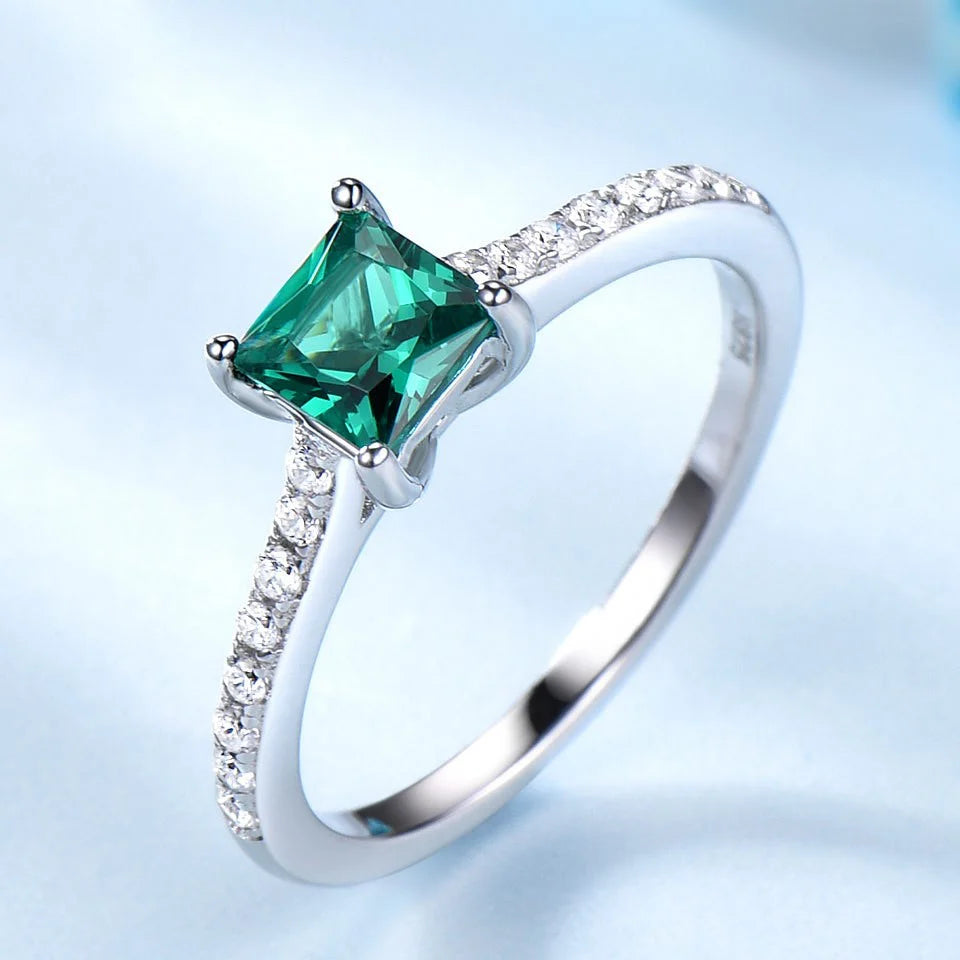 Our Earnest Ring is a fabulous 925 Sterling Silver bold ring with a rectangular cut emerald stone accentuated with tiny white gems on the band. Exclusively available in silver.