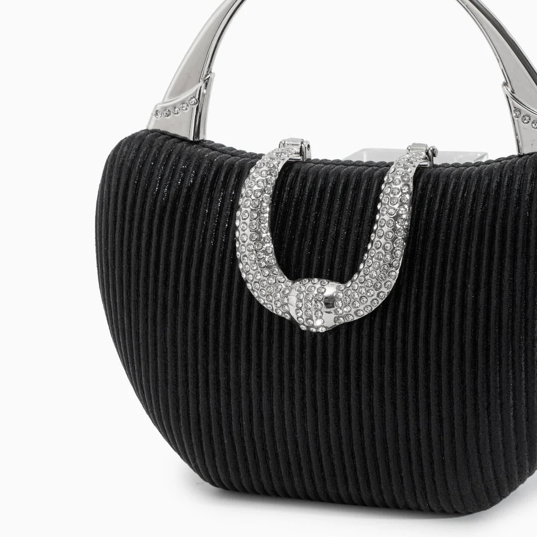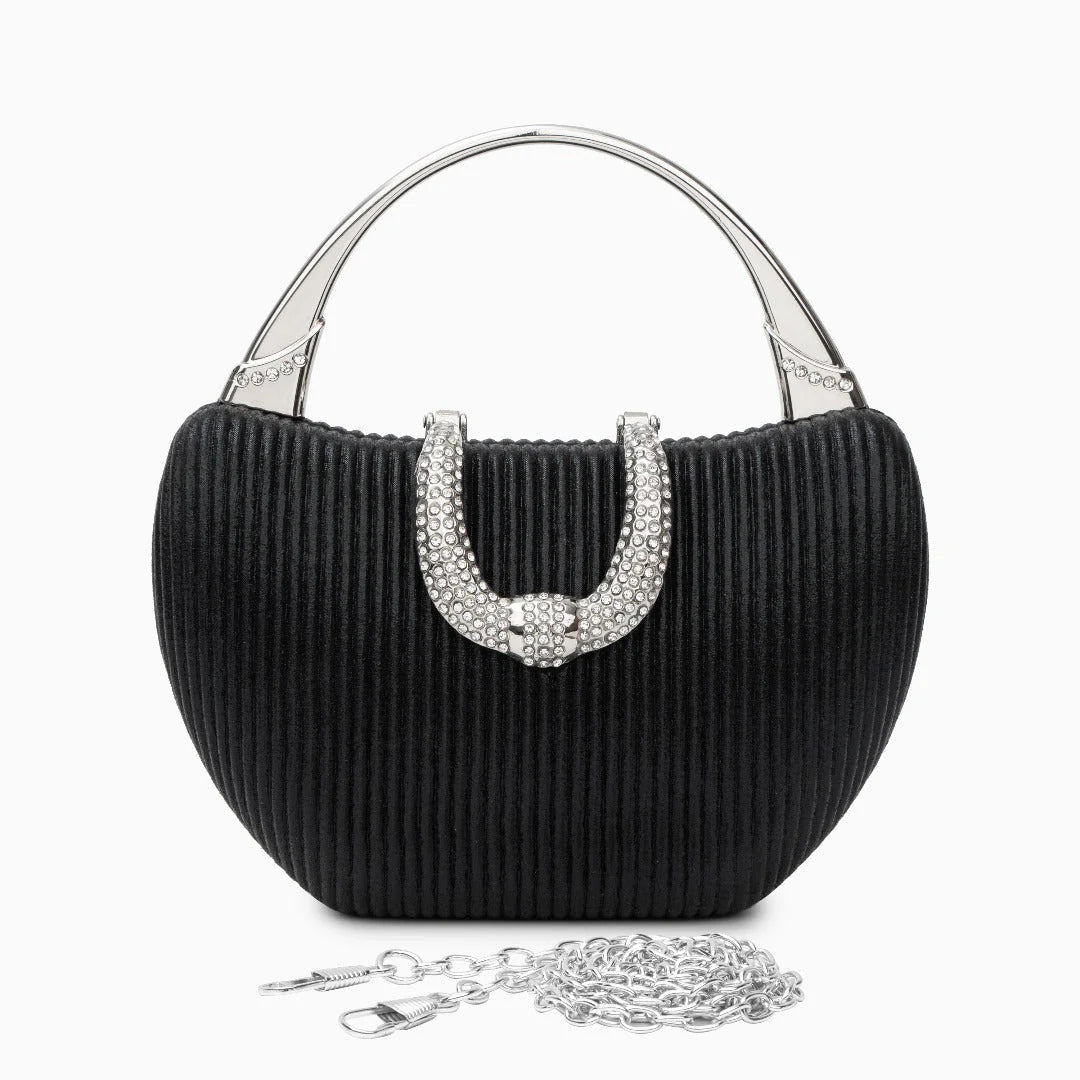 Get your hands on our Fancy Metallic Evening Handbag. It features a smooth metallic outer exterior with an elegant diamond buckle and a sturdy metal handle. It can be worn throughout the day, taking you effortlessly into the evening.
