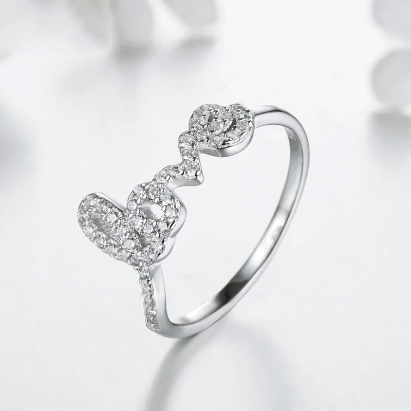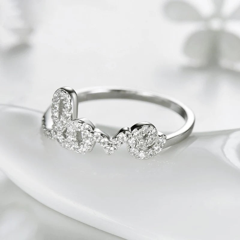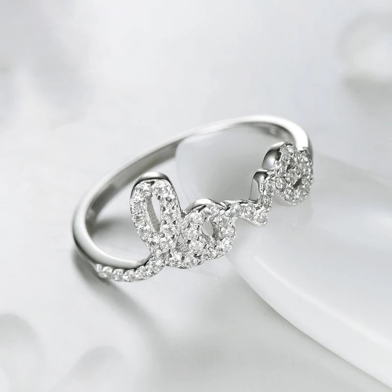 Engraved with the words "Love" & set with tiny sparkling cz diamond stones, this 925 sterling silver Forever Love Ring is a lovely way to express your love. Exclusively available in silver.