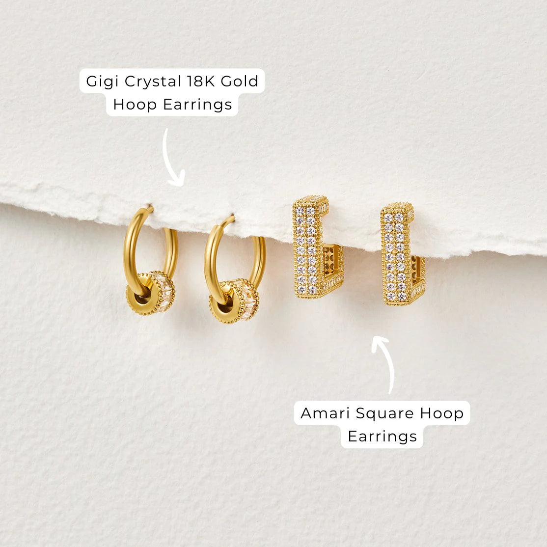 Complete any look with these beautifully Gigi Crystal 18K Gold Hoops. Designed to sparkle and shine all night long, these earrings are perfect for any occasion.