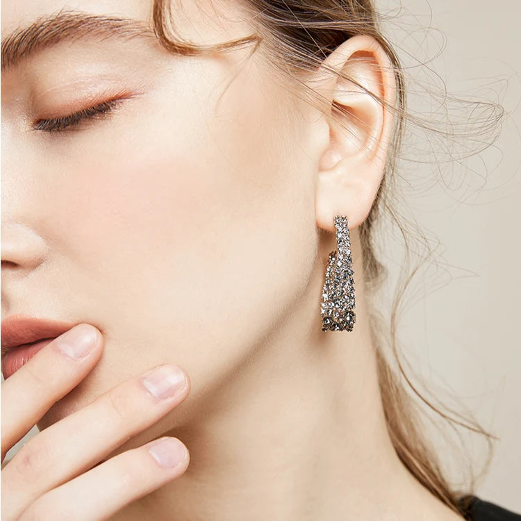 Stand out from the crowd with our Grand Rhinestones Hoop Earrings. Featuring a wide band that is studded with layers of sparkling beautiful rhinestones, these earrings are the perfect finishing touch for a beautiful day. Now available in gold and silver.