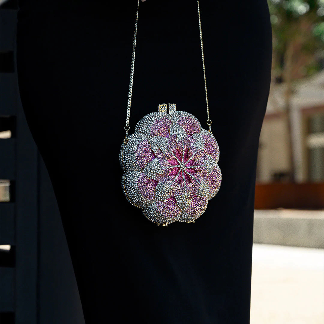 Experience the charm of the Jeline Flower Clutch Bag, where nature meets elegance. Adorned with a floral pattern and sparkling jewel embellishments, this vegan & cruelty-free bag is a true standout. Perfect for making a sophisticated statement, it's designed to captivate attention. Available in pink, it's the epitome of chic gracefulness.