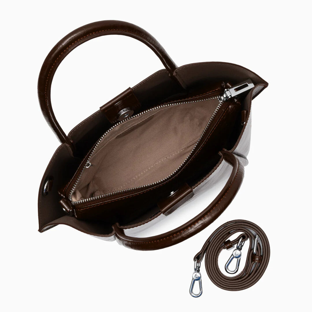 The Joena Crossbody Bag is a perfect balance of sophistication and attitude. Crafted from genuine leather with a waxed exterior, it offers a beautifully sleek and durable finish. Featuring sweetheart curves on top and a flap-like shape on the sides, this bag boasts a unique shape that adds an unexpected twist to your bag collection. With its detachable strap and double handles, you can easily switch between a chic shoulder bag or a versatile crossbody. The Joena Crossbody Bag is the statement piece you’ve been waiting for!