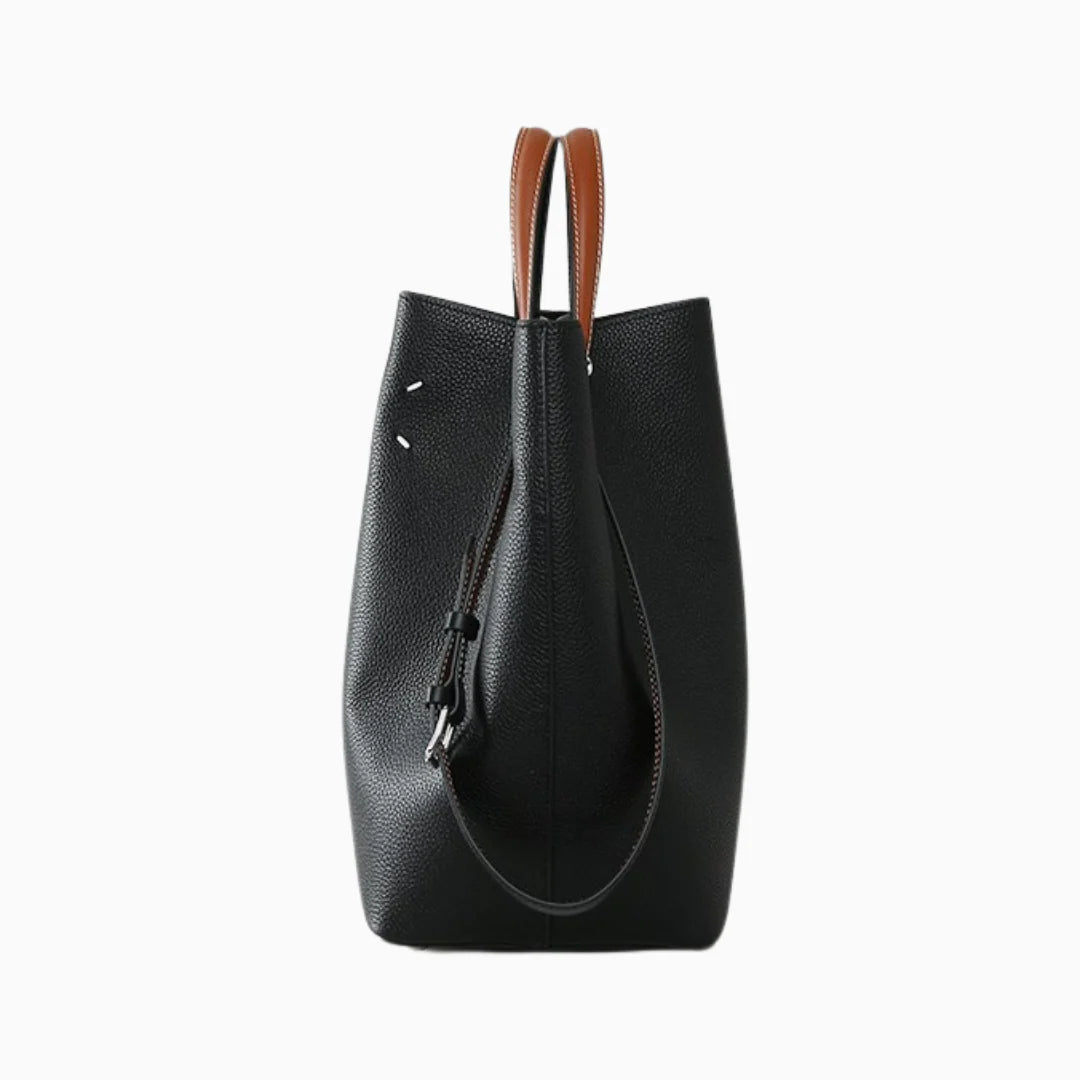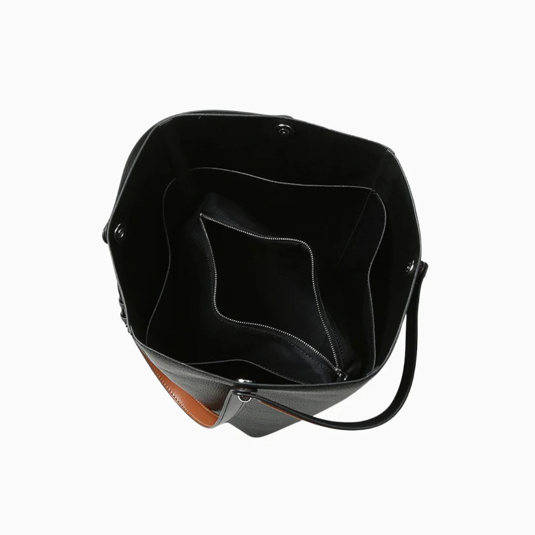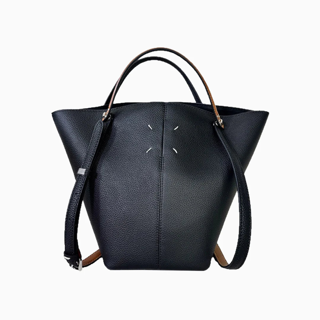The Keira Handbag is the kind of bag that turns heads without trying too hard. With its large bucket silhouette and soft leather body, it naturally forms effortless pleats at the top when carried. Keira features a roomy interior, soft double handles, and an adjustable strap so you can wear it your way. Whether slung over the shoulder or held in hand, it’s designed for comfort, function, and that effortlessly chic look. Equal parts laid-back and stylish, this is your go-to bag when you want a touch of softness with your statement. Exclusively available in black.