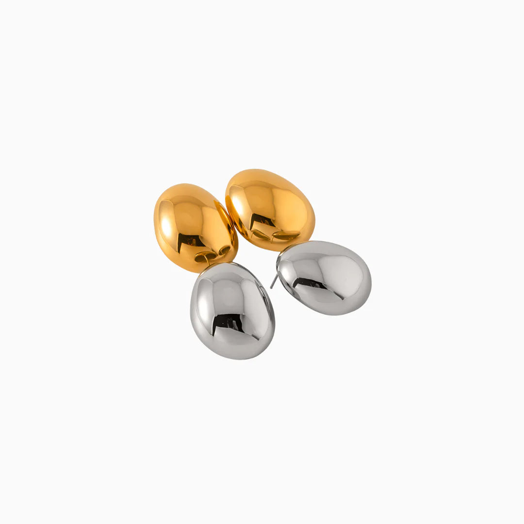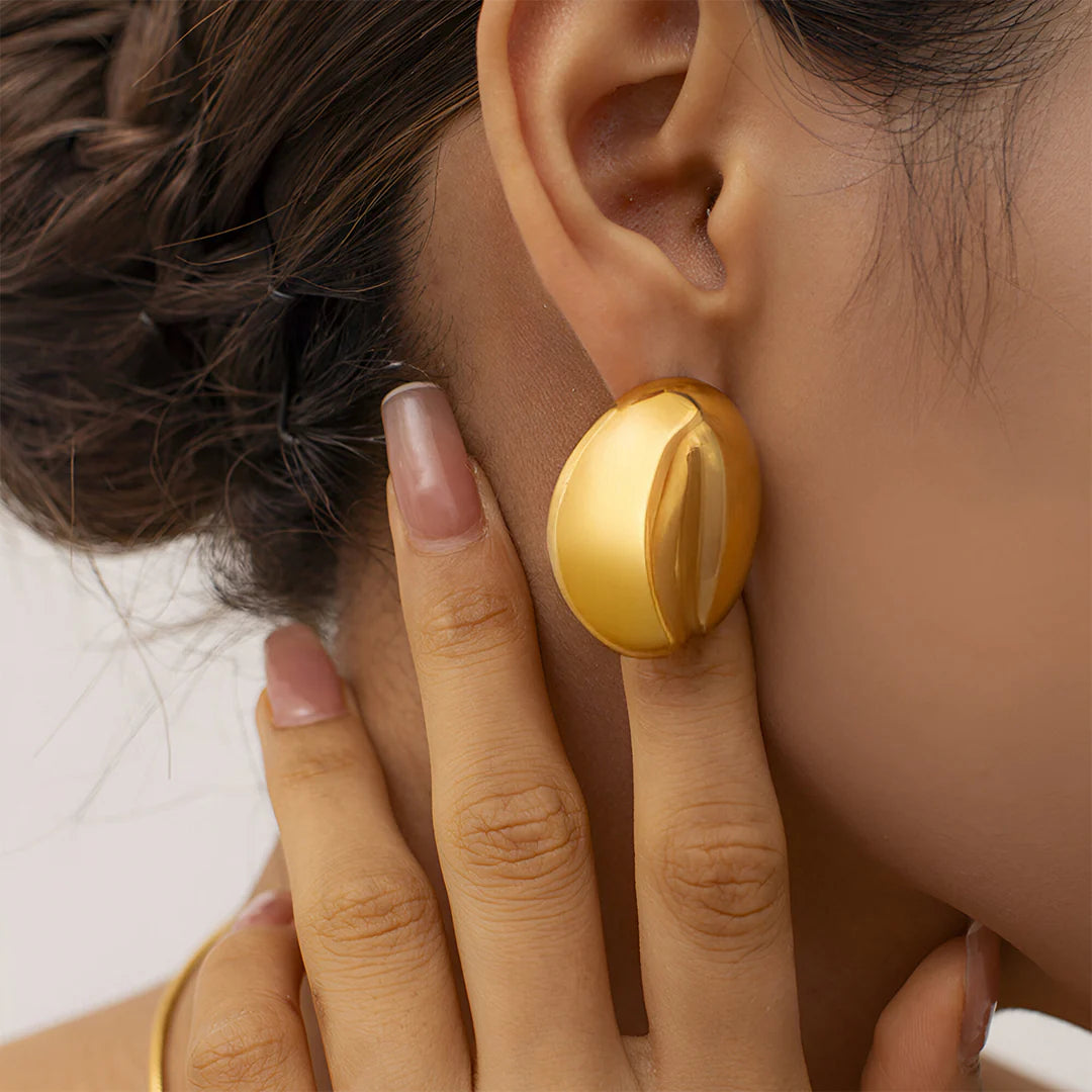 A sculptural take on the classic stud, these bold oval earrings bring effortless sophistication to any look. Their smooth, high-shine surface reflects light beautifully, creating a modern statement with minimal effort. Crafted durably, they offer a luxurious weight and polish without compromising on comfort. The rounded silhouette is equal parts artful and refined — easy to style from day to night. Whether worn solo or paired with other sleek pieces, these earrings lend a polished edge to every outfit. A versatile essential for the modern wardrobe, designed to stand out in the most subtle way.