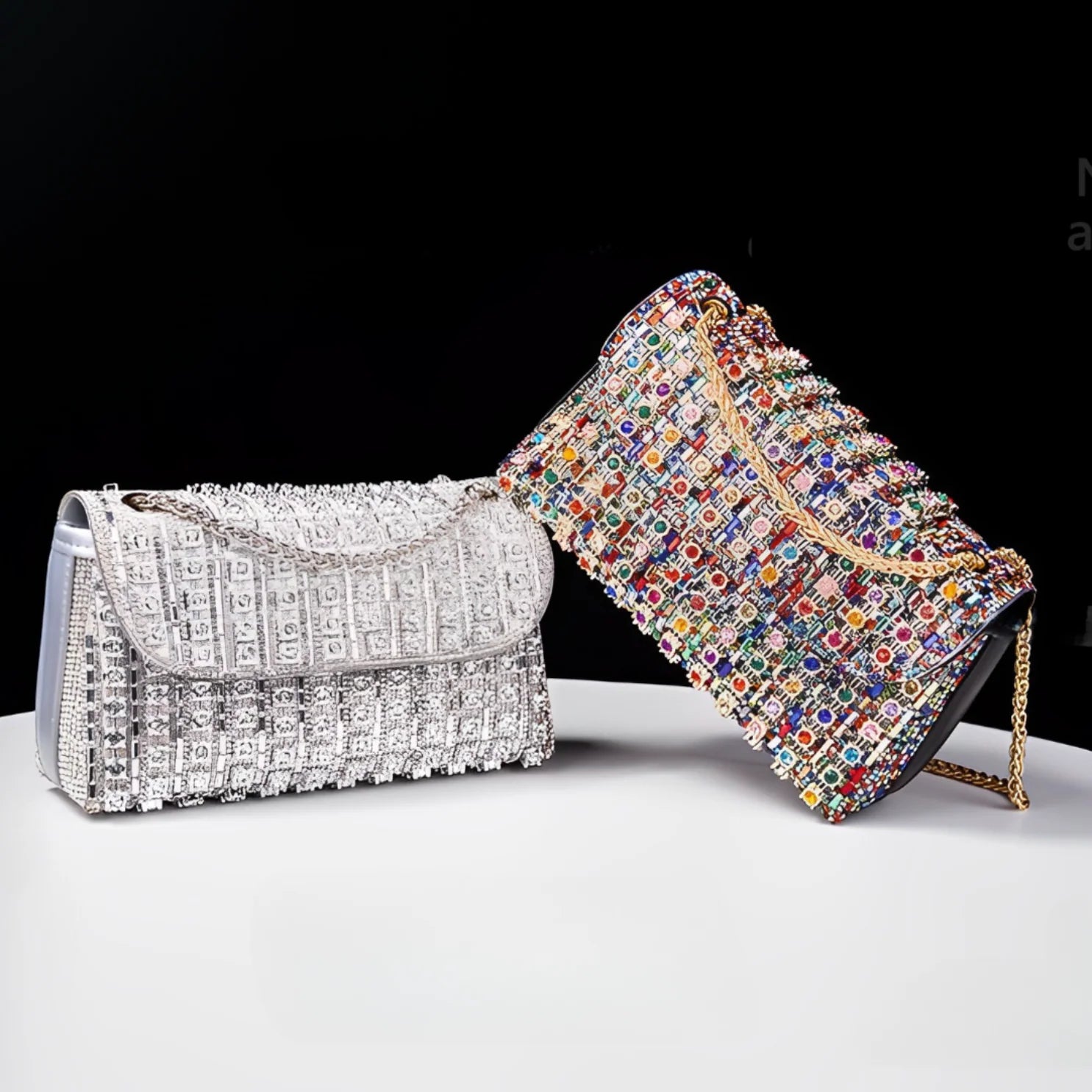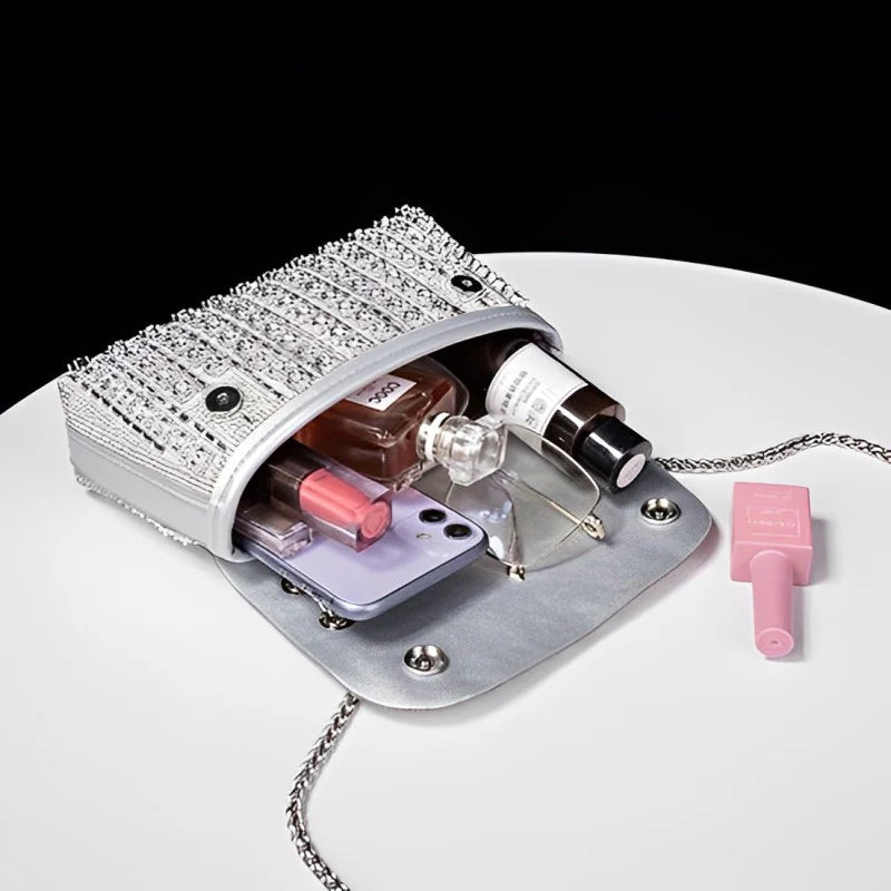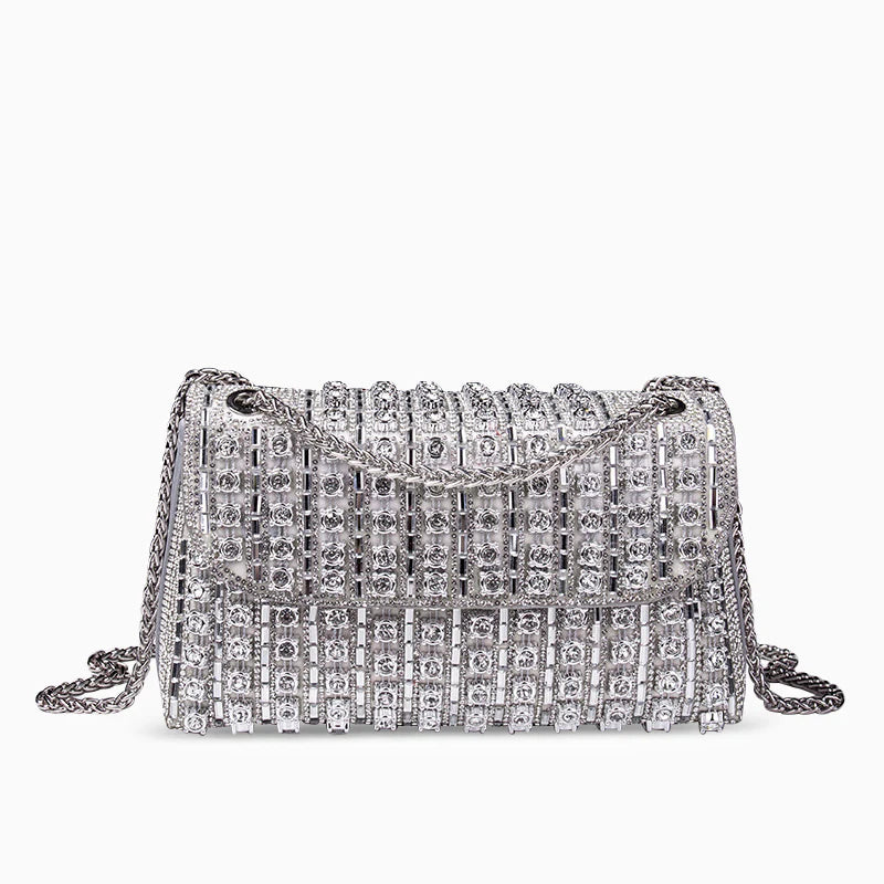 The Kristi Diamond Chain Crossbody Bag boasts intricate rhinestone details that demand attention and admiration. Meticulously placed with precision, these rhinestones create an enchanting mosaic that catches the light and casts a spell of elegance wherever you go. This bag also features a sleek chain strap for more comfort. With ample space to fit all your essentials, it's the perfect companion for every occasion. Now available in silver and colorful.