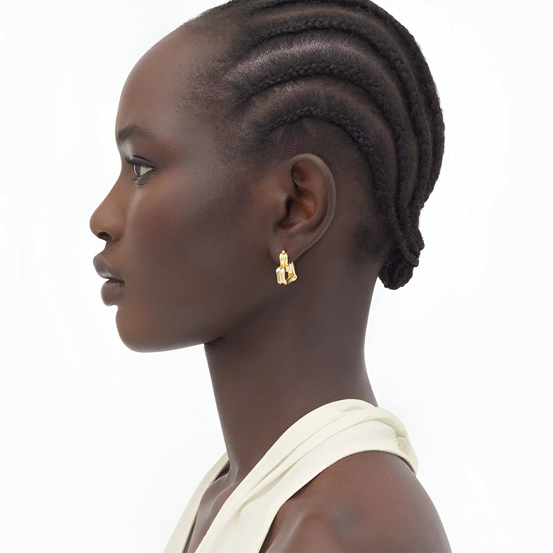 The Lina Abstract Hoop Earrings are an artistic twist on the classic hoop—bold, fluid, and full of attitude. With their asymmetrical zigzag silhouette, they channel modern art and organic movement in perfect harmony. Their soft gold finish brings a warm, radiant glow, while the unexpected angles add just the right edge. Light yet impactful, Lina is made for the confident minimalist who craves a bit of rebellion in their refinement. Whether paired with sleek tailoring or an off-duty look, these hoops make an unapologetically stylish statement.