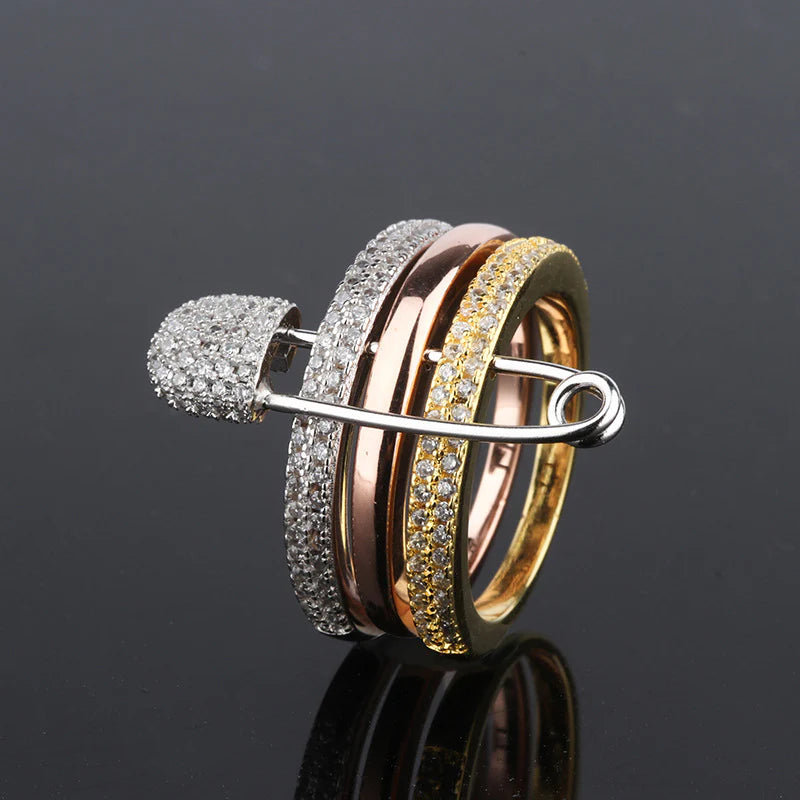 A new jewelry trend is here, introducing our Lustrous Pin Ring. It features gemstones studded three-band in silver color tones with a shimmering pin-shaped design to complete a unique & fancy look. Crafted with high-quality metal; this stunning ring provides maximized durability, is lightweight, comfortable to wear, and does not tarnish.