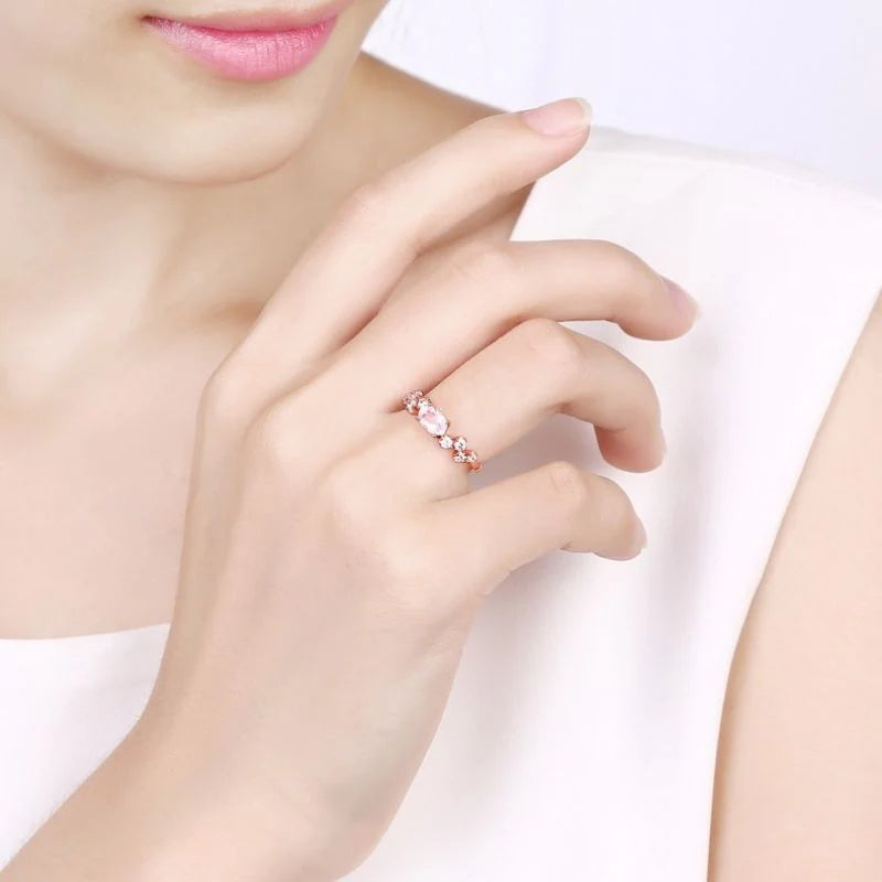Discover our beauty in a ring! Our Lustrous Twirl Ring is adorned with a stunning array of topaz or pink crystal stones set in 925 Sterling Silver. Exclusively available in rose gold, the playful shape and the colors that twinkle in the light brings joy to all who behold it.