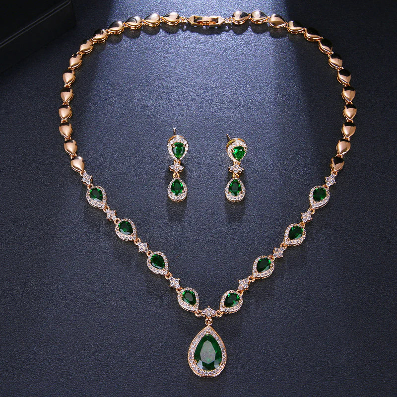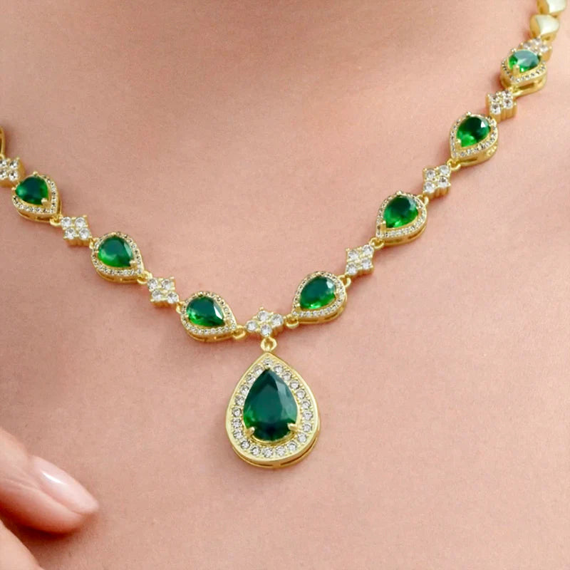 Our Emerald Green Jewelry Set makes a stunning impression. This jewelry set features an emerald green briolette necklace and dangling earrings. The gorgeous emerald green color is sure to make an amazing addition to this jewelry set. Perfect as a gift for yourself or someone you love.