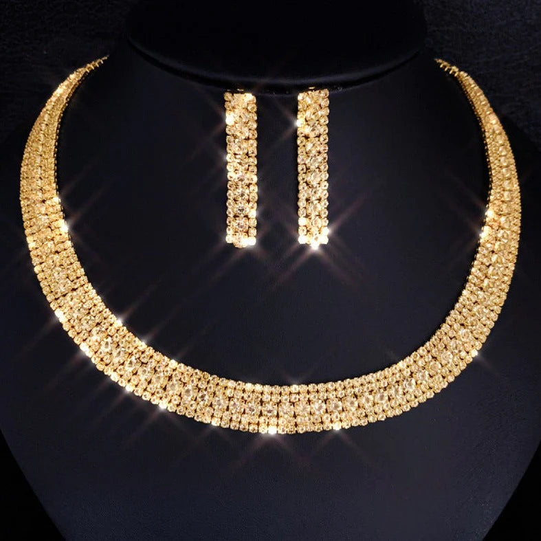 This Luxury Rhinestones Jewelry Set features a stunning mix of fashion, glamour, and luxury! This set is crafted with beautiful shiny rhinestones in different sizes. It comes with a necklace and earrings , perfect for any special occasion.