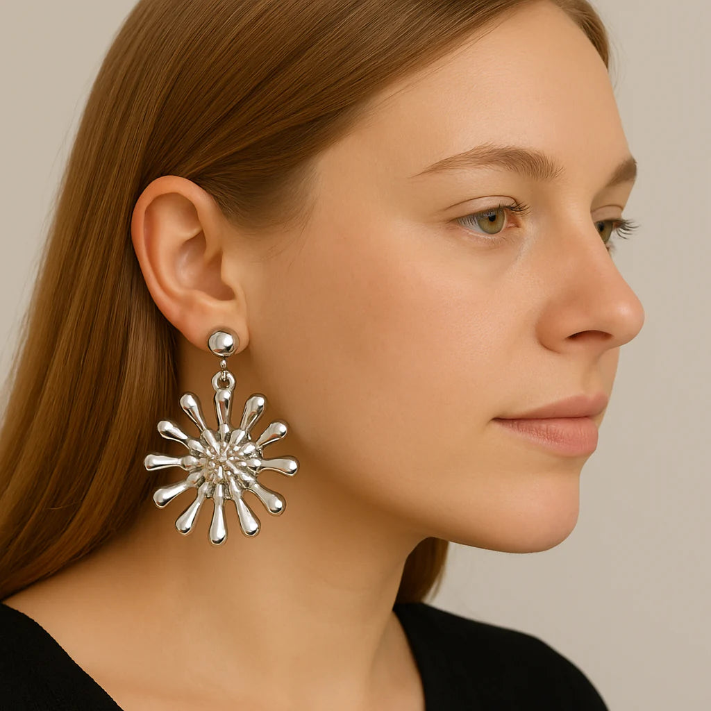 The Lyra Bloom Earrings capture the essence of bold, modern elegance. Inspired by the organic form of blooming petals, their sculptural design adds a unique, artistic edge to any look. Each pair is crafted from high-quality metal, offering durability with a lightweight feel. Whether you're styling for a special occasion or elevating your everyday outfit, these earrings bring effortless charm. Their radiant shape and fluid silhouette make them a true statement piece. A perfect blend of creativity and confidence, they’re designed to turn heads.