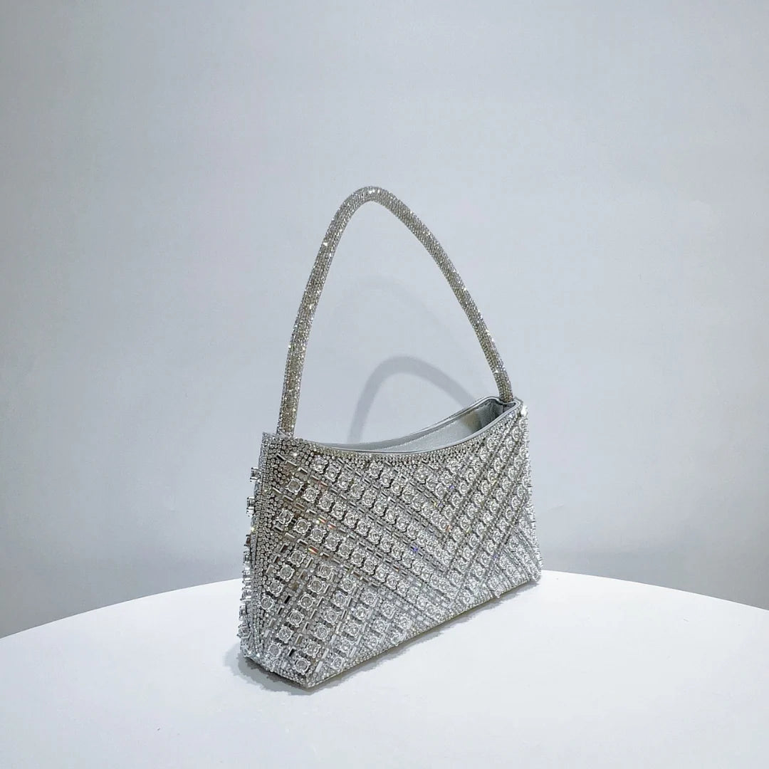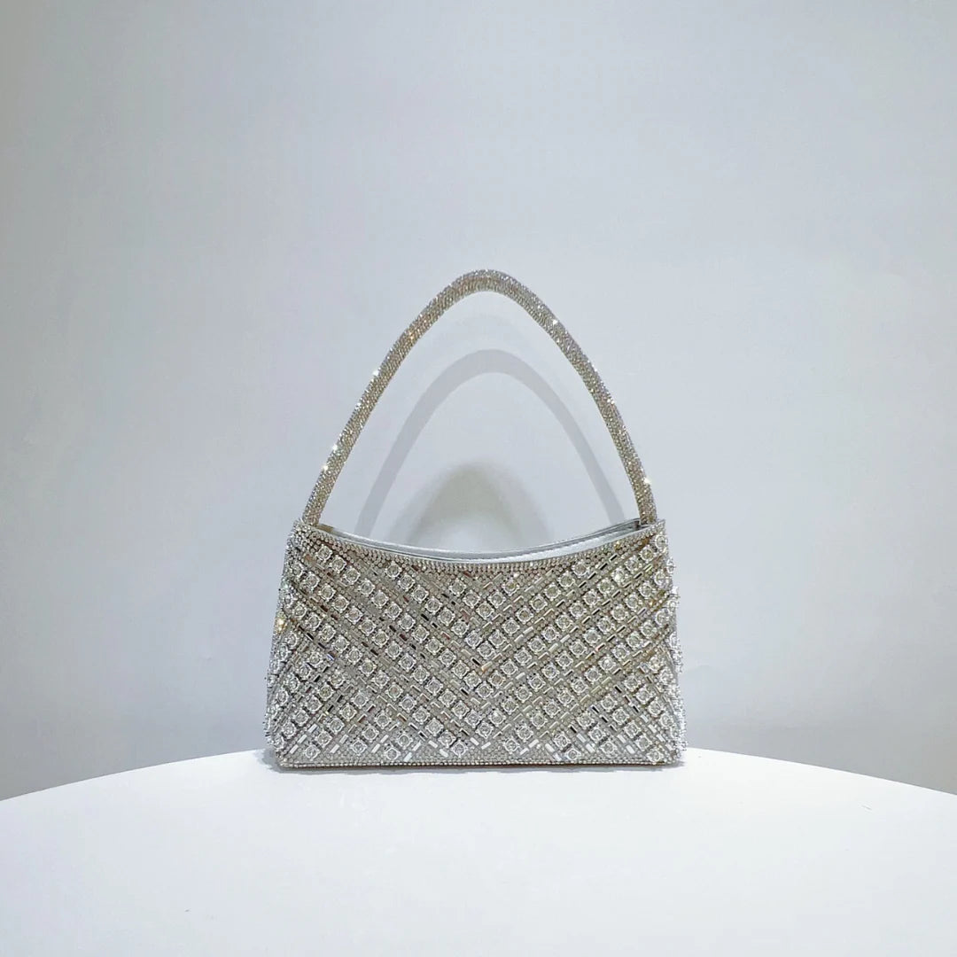 A dazzling ode to modern glamour, the Lyra Crystal Mini Shoulder Bag is designed to captivate. Its sculpted silhouette is encrusted with meticulously placed crystals that shimmer with every movement, making it a statement piece for after-dark occasions. The compact structure keeps essentials close, while the sleek handle ensures graceful wear. Ideal for evenings where sparkle is non-negotiable, this bag pairs bold brilliance with refined craftsmanship. An effortless blend of function and dazzle, it transforms the ordinary into the extraordinary.