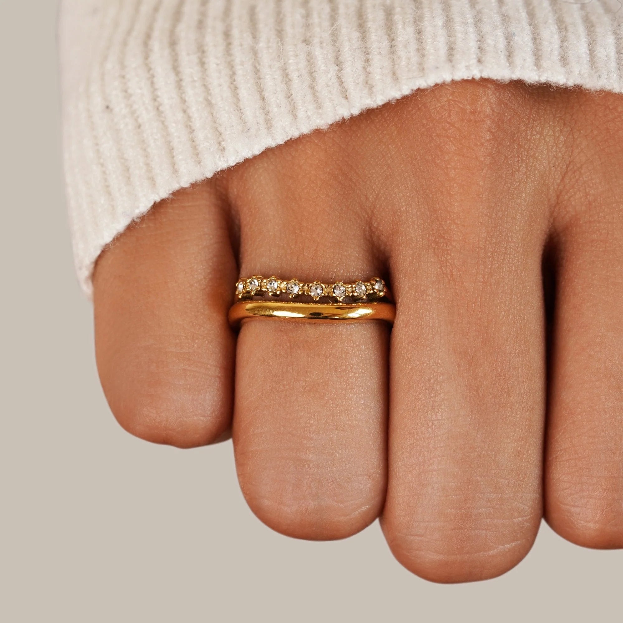 Be swept away by the beauty of this beautiful Marrisa White Crystal Layered Ring. Made with waterproof stainless steel, you will never have to worry about green fingers, fading or tarnishing ever again.