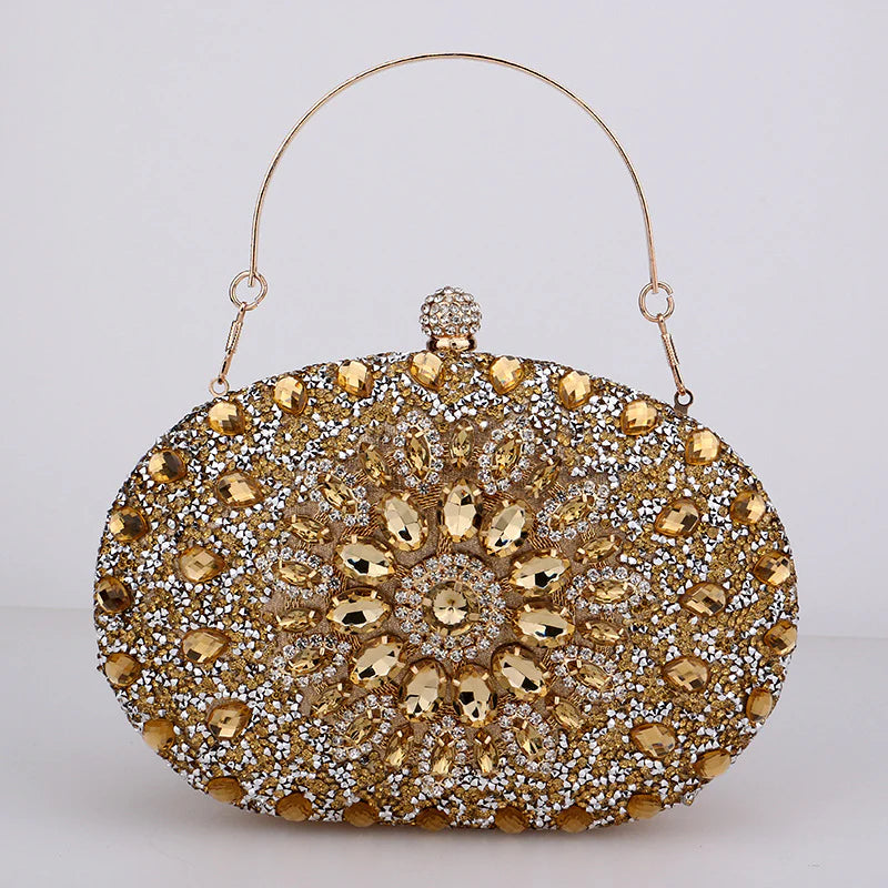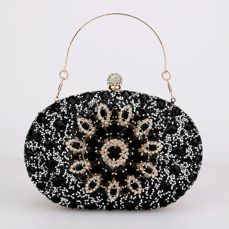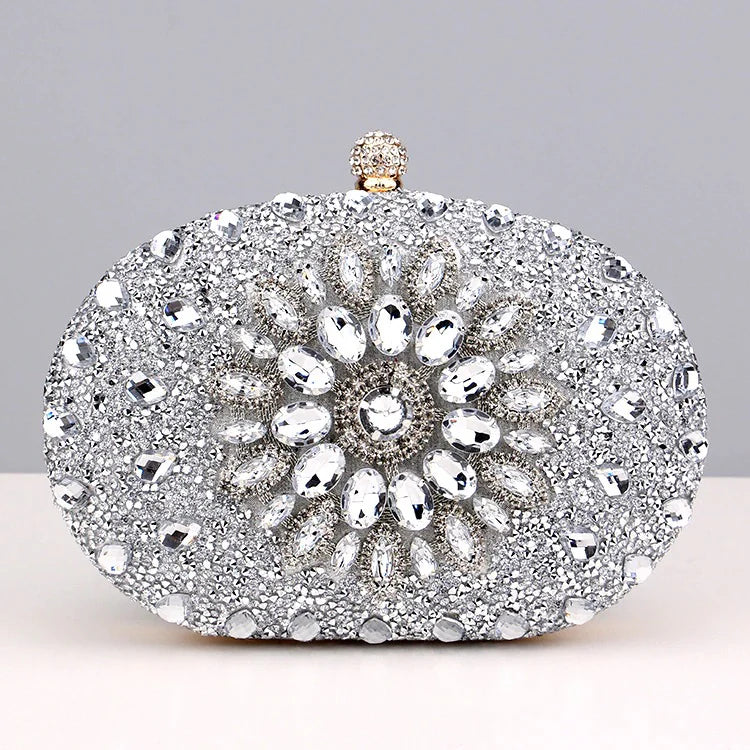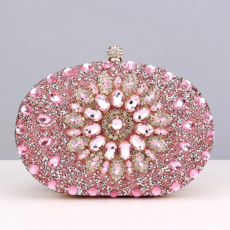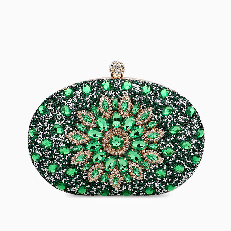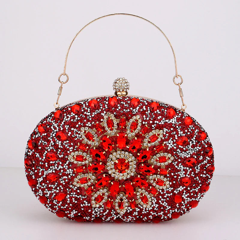 This stunning piece features a dazzling explosion of diamonds that will catch every eye in the room. It effortlessly fits all your essentials and comes with a chain strap for maximum convenience. Get ready to channel your inner royalty with the gorgeous Meghan Diamond Encrusted Clutch Bag. Now available in red, green, black, pink, gold, and silver.