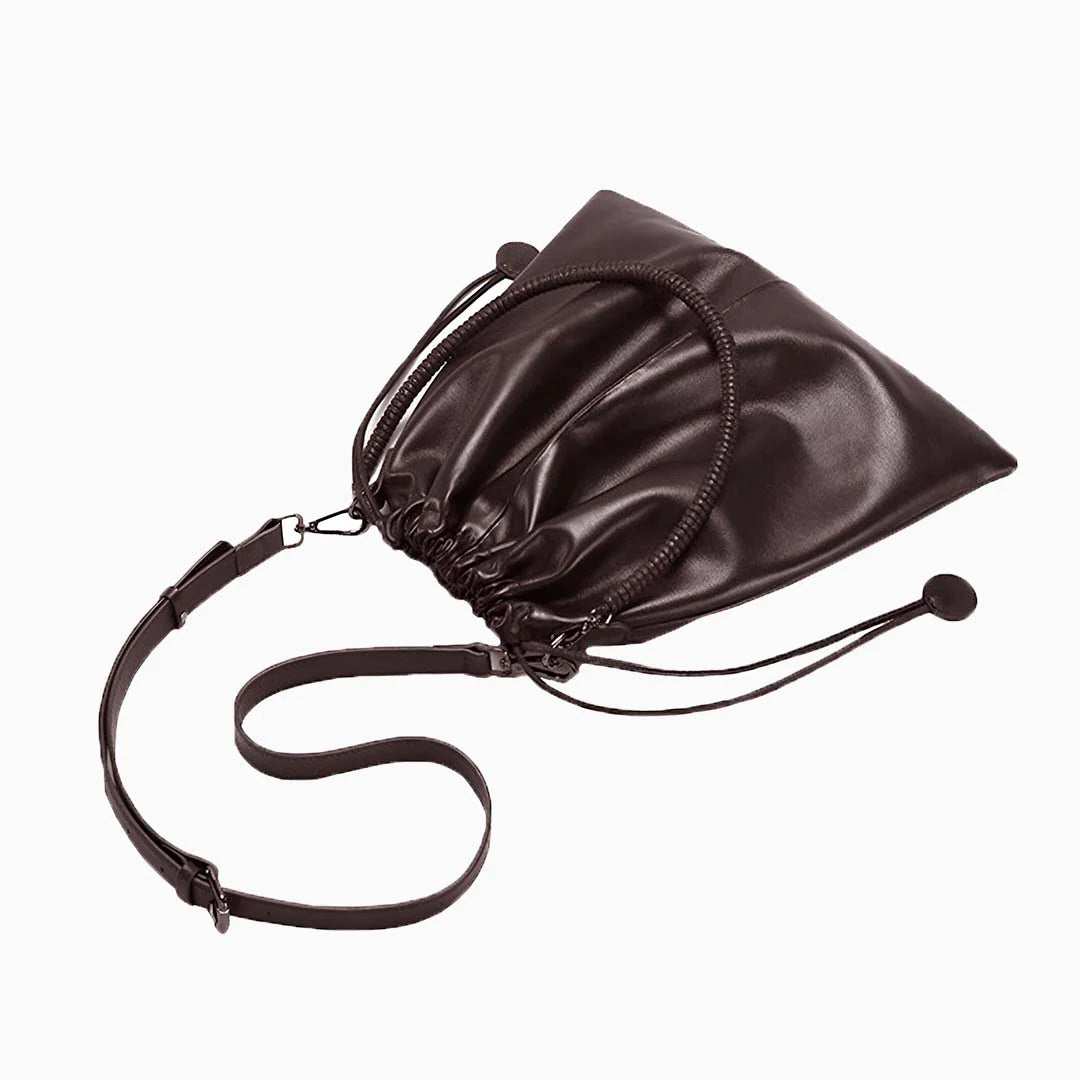 Designed with a relaxed yet sculptural shape, the Miley Crossbody Bag redefines casual chic with its soft, structured silhouette. The cord-like handle adds a tactile, elevated detail, wrapping around the body with an effortless drape that feels both sporty and refined. A drawstring closure cinches the top with a soft pull, creating natural gathers that lend the bag a lived-in, luxe look. Its generously spacious interior is made to move with you, roomy enough to hold your day’s essentials without sacrificing style. Exclusively available in coffee.
