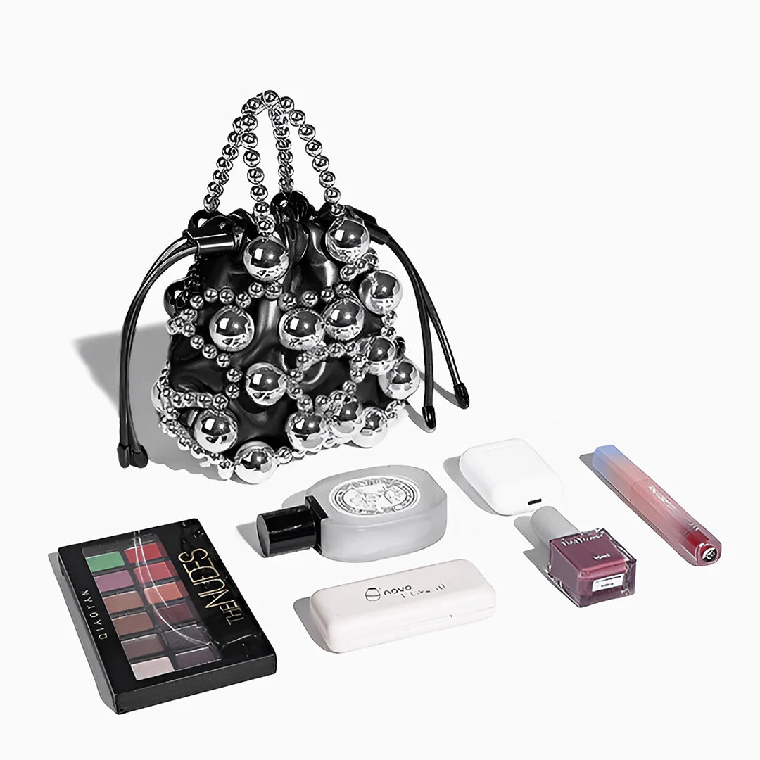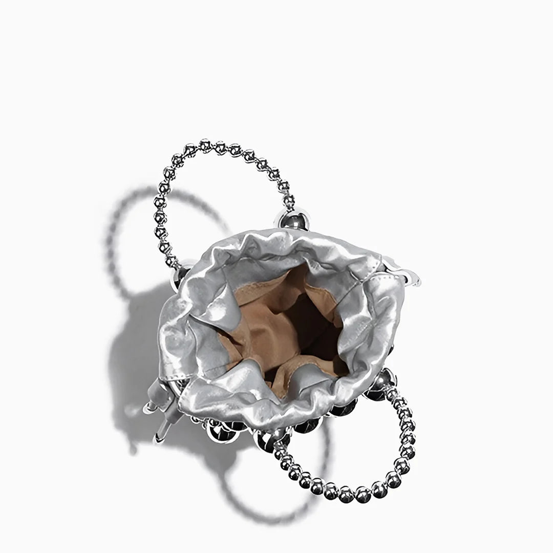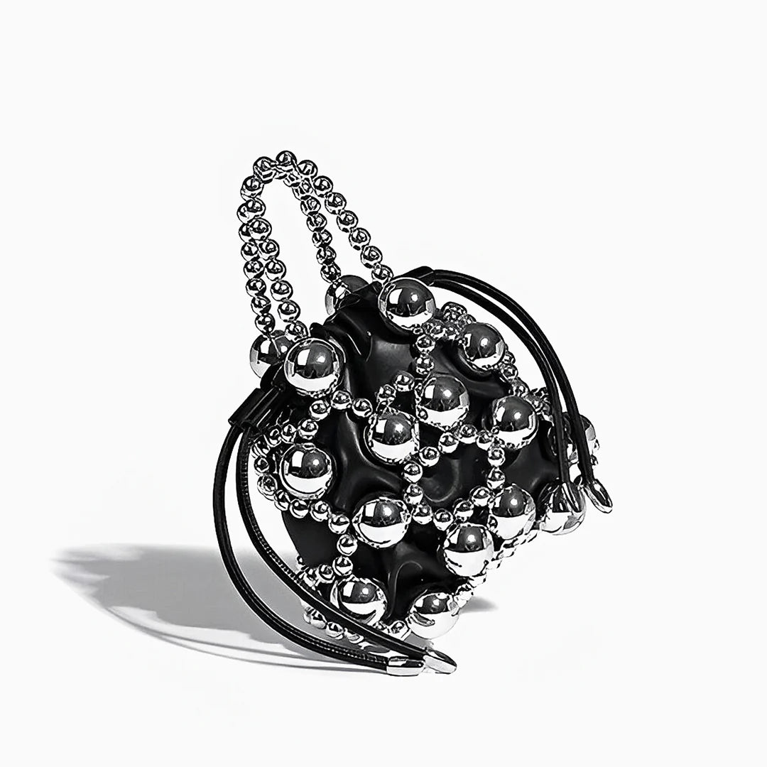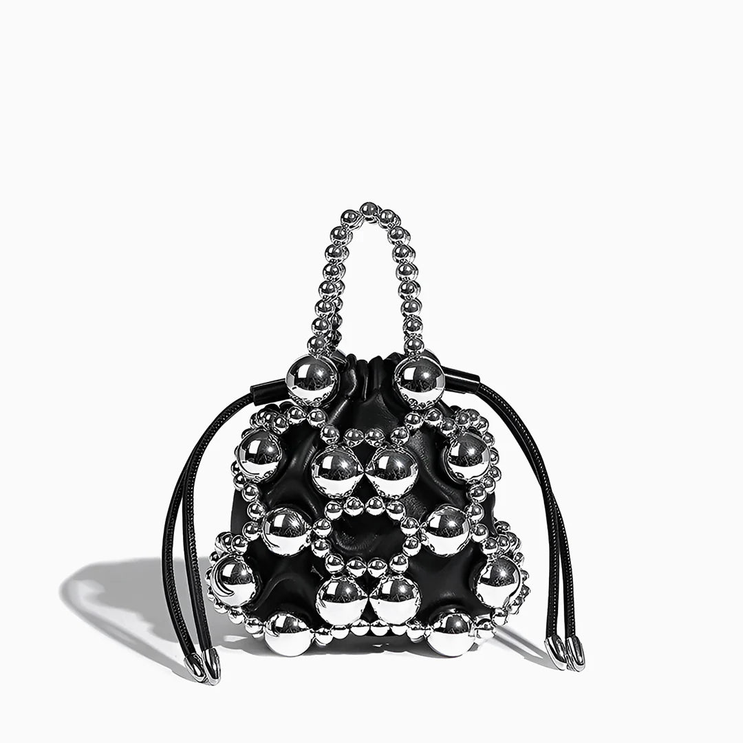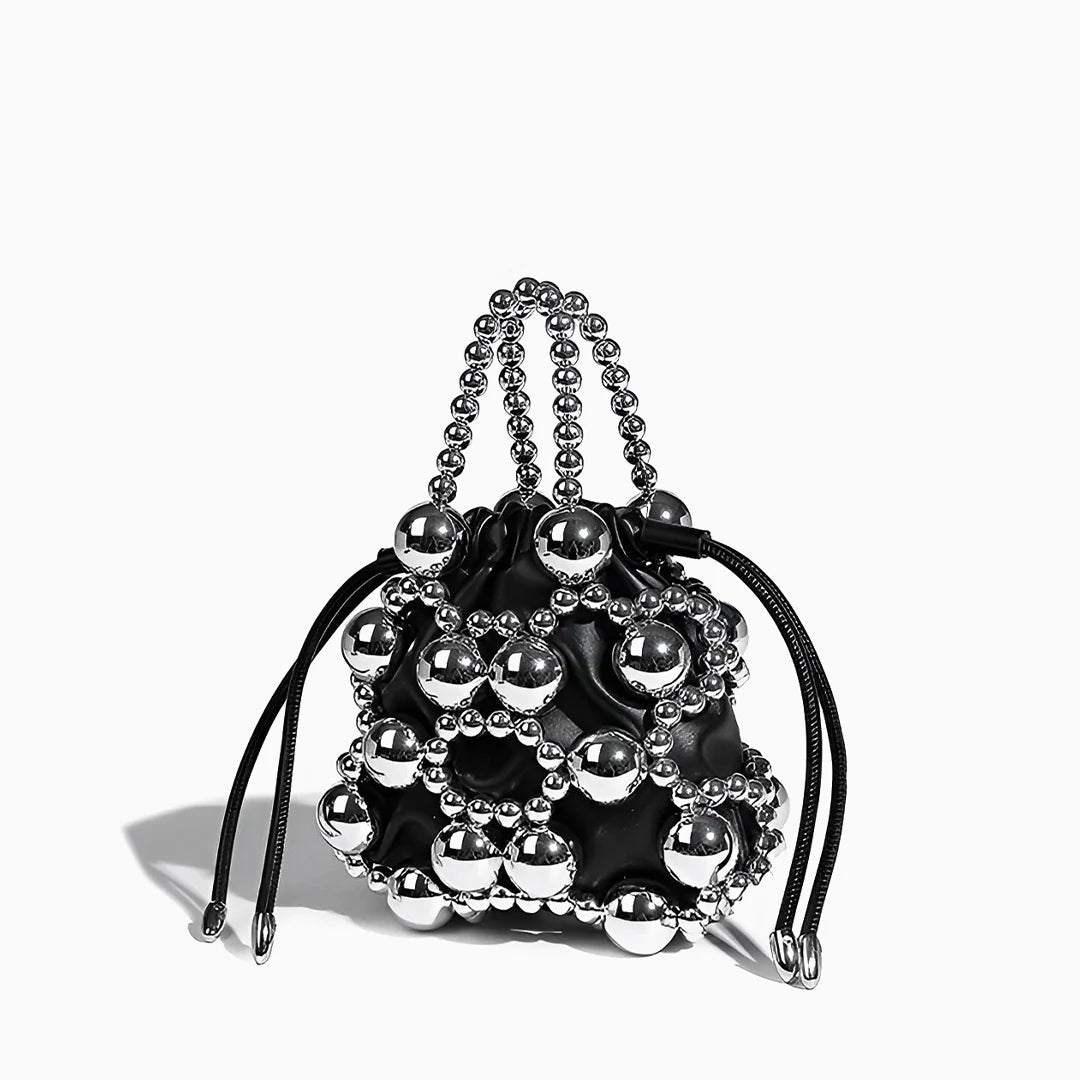 Crafted with woven silver beads in various sizes, this bag creates a hollow, dimensional effect that’s both artistic and elegant. Inside, a silky pouch with a drawstring closure keeps your essentials secure while adding a soft contrast to the structured beaded design. The beaded handle offers a chic handheld option, while the detachable strap lets you switch to effortless crossbody styling. With excellent craftsmanship and a design that elevates any outfit, the Mitch Handbag is a must-have for those who love to make a statement. Now available in silver and black.