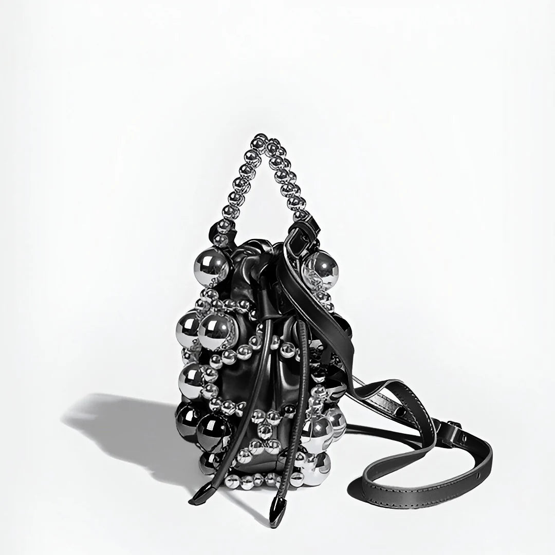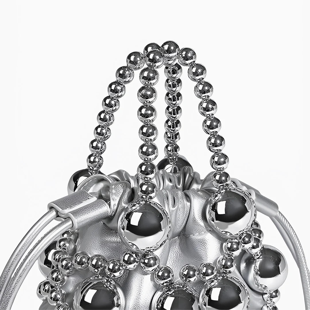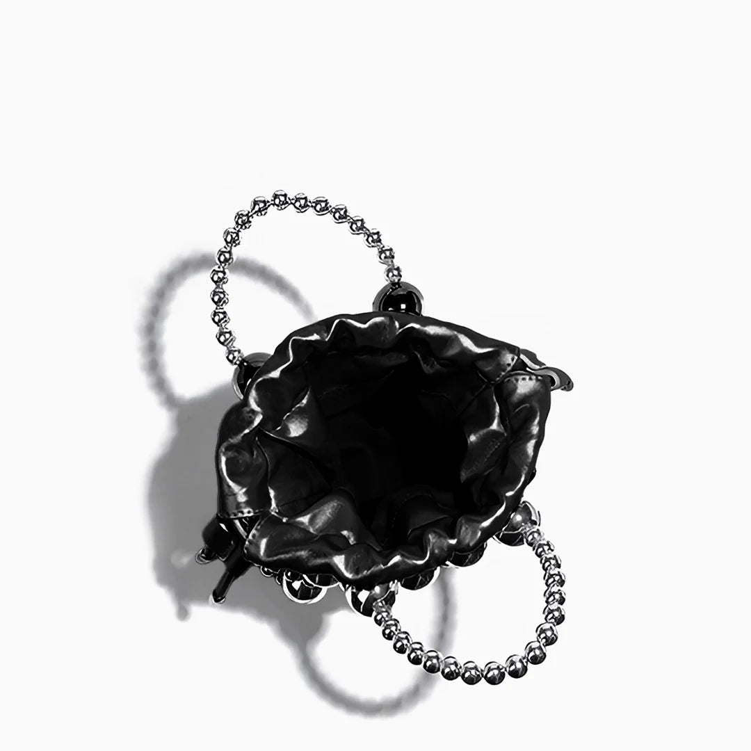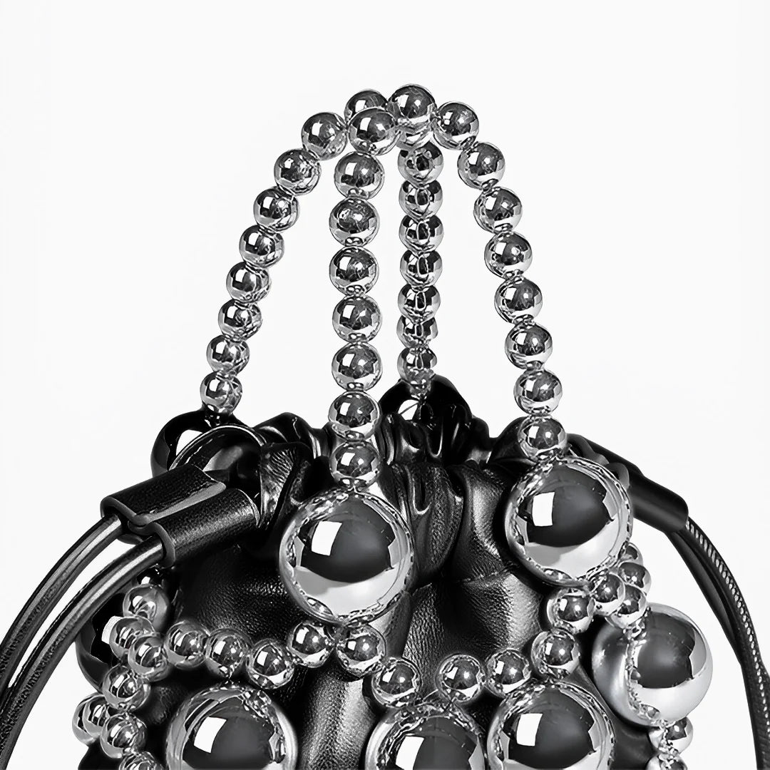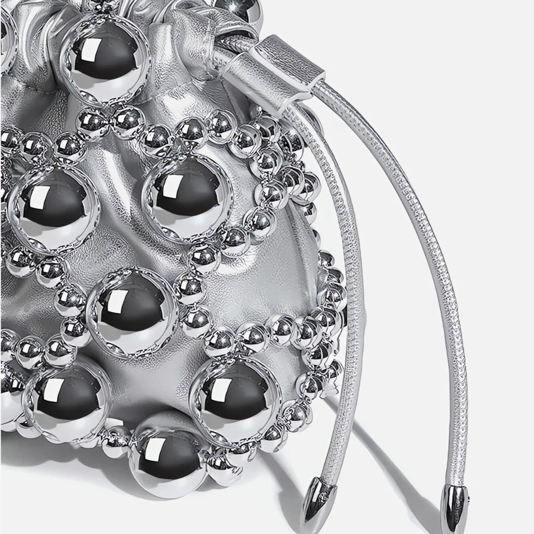 Crafted with woven silver beads in various sizes, this bag creates a hollow, dimensional effect that’s both artistic and elegant. Inside, a silky pouch with a drawstring closure keeps your essentials secure while adding a soft contrast to the structured beaded design. The beaded handle offers a chic handheld option, while the detachable strap lets you switch to effortless crossbody styling. With excellent craftsmanship and a design that elevates any outfit, the Mitch Handbag is a must-have for those who love to make a statement. Now available in silver and black.
