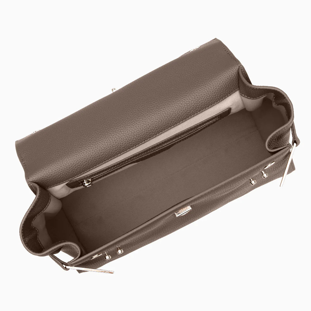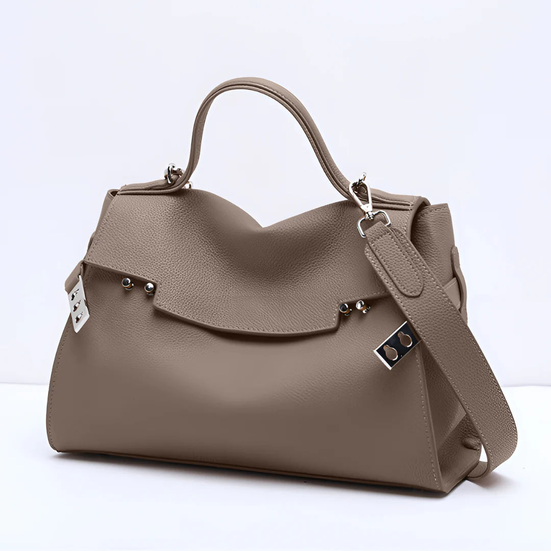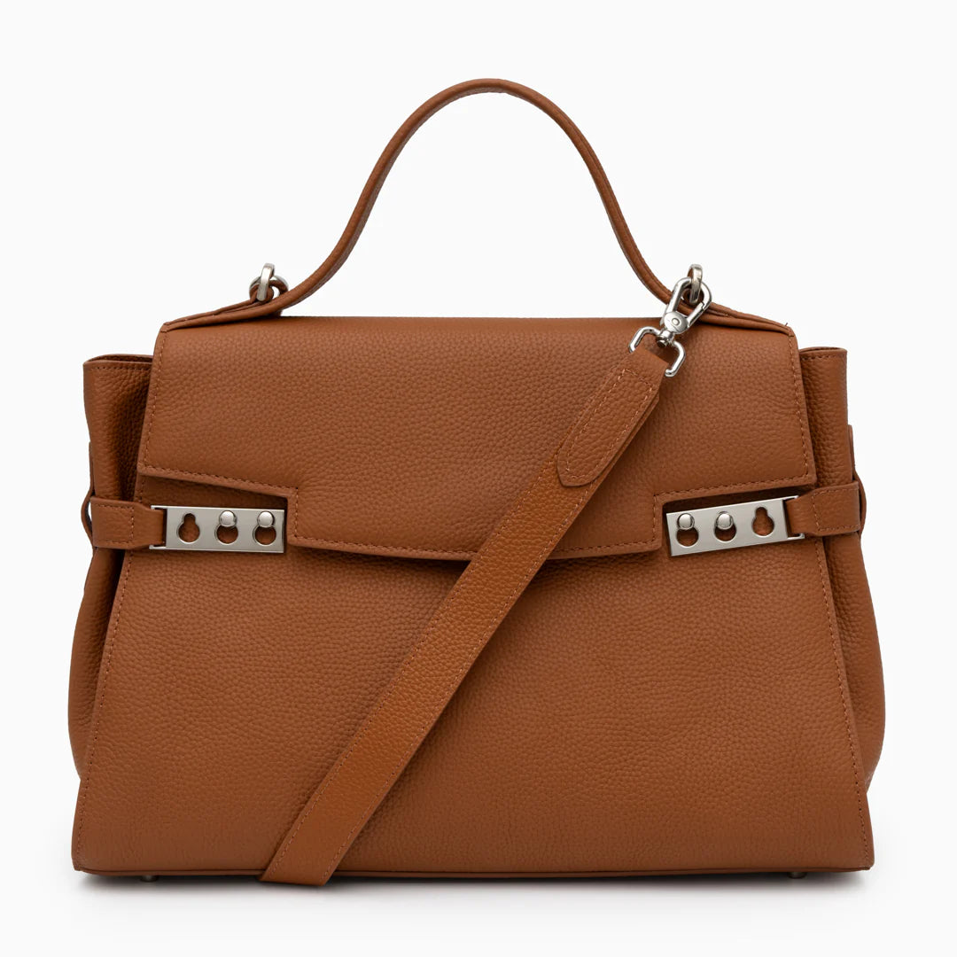 The Saville Grace Tote Bag blends timeless form with contemporary polish. Its rich camel hue and clean structure evoke quiet luxury, perfect for everyday elevation or understated business chic. Silver hardware and sculptural details add an edge to its minimalist silhouette. Carry it by the sturdy top handle or sling it crossbody for versatile styling on the go. From morning meetings to evening errands, it moves with grace and purpose.