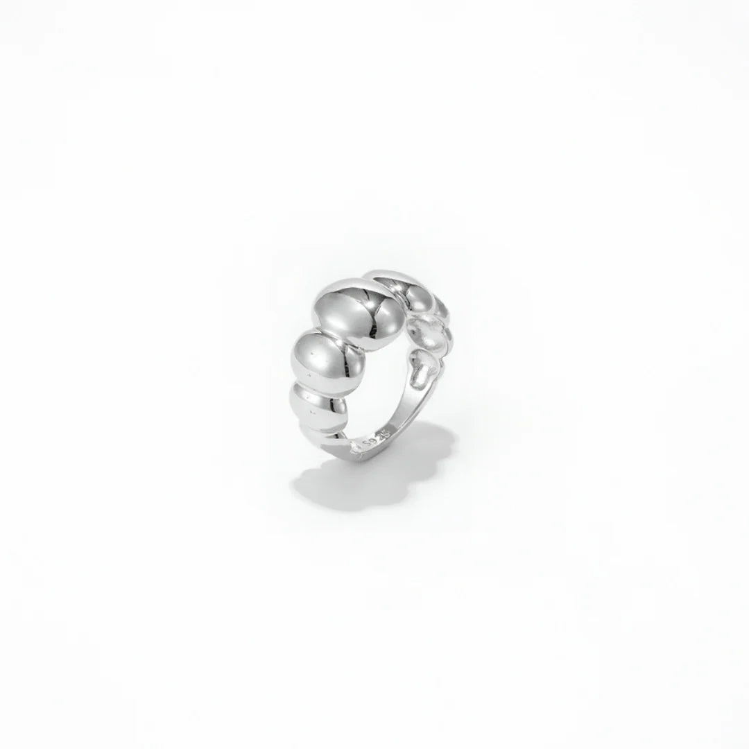 The Selene Bubble Band Ring blends softness and strength in a silhouette inspired by the fluidity of modern sculpture. Its voluminous, rounded form catches the light from every angle, making it a subtle yet radiant statement piece. Designed to elevate both everyday ensembles and evening looks, this ring brings an effortlessly polished finish to your jewelry collection.