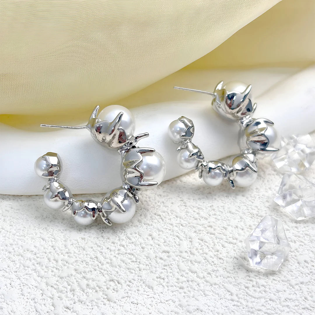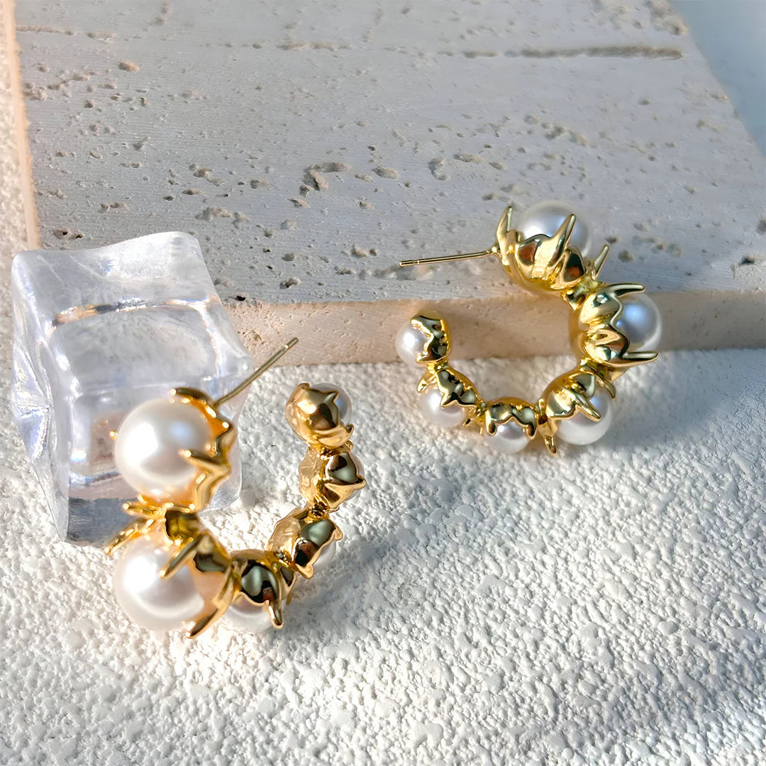 The Serena Pearl Claw Hoops are a daring twist on timeless elegance. Each luminous pearl is delicately cradled in molten claws, creating a fierce, sculptural contrast that’s both bold and refined. The open hoop silhouette adds a contemporary edge, making these earrings a true statement piece. Wear them to elevate a sleek evening outfit or to add a touch of drama to daytime ensembles. Their balanced blend of softness and strength speaks to modern femininity.A standout addition to any jewelry lover’s collection, effortlessly pairing with both minimalist and layered looks.