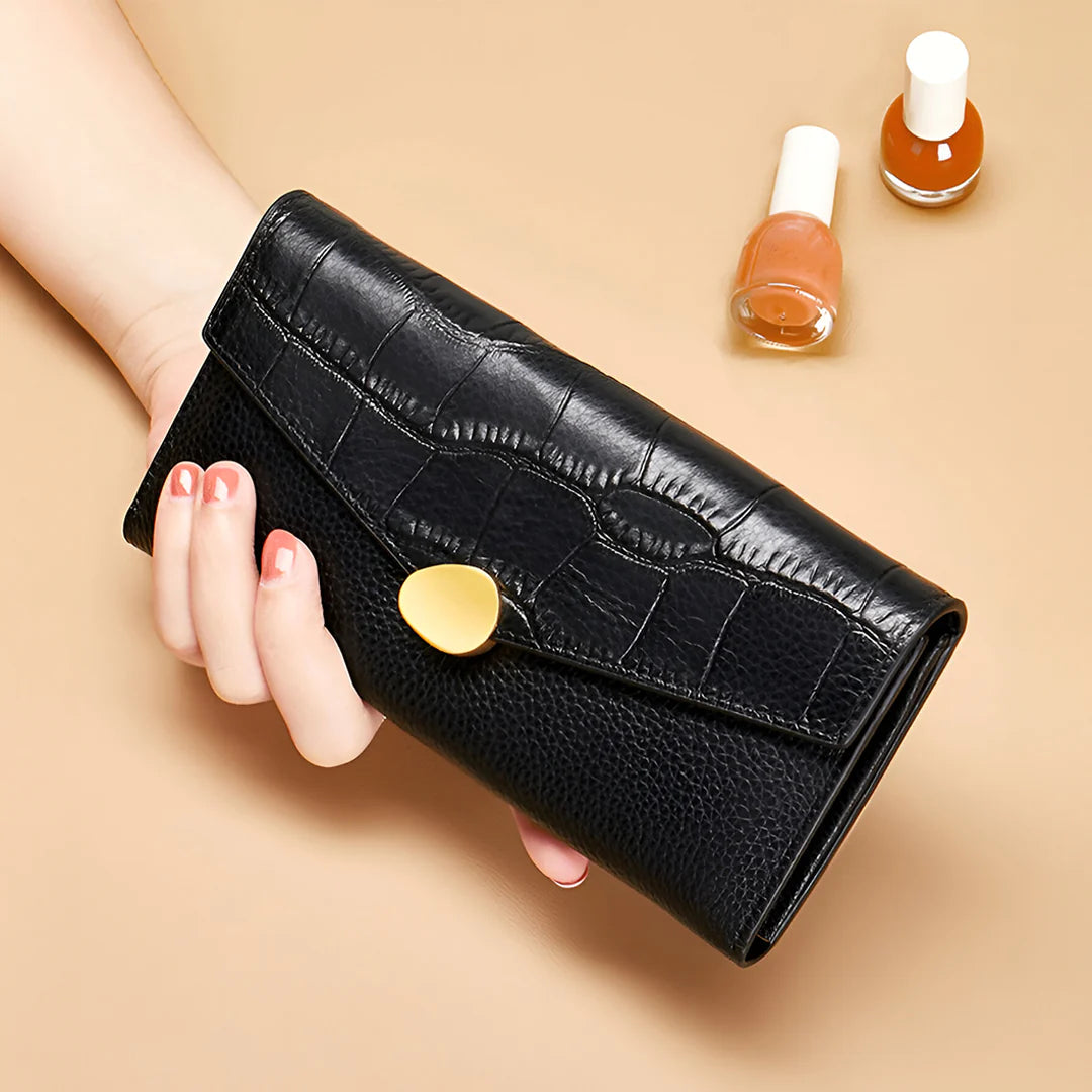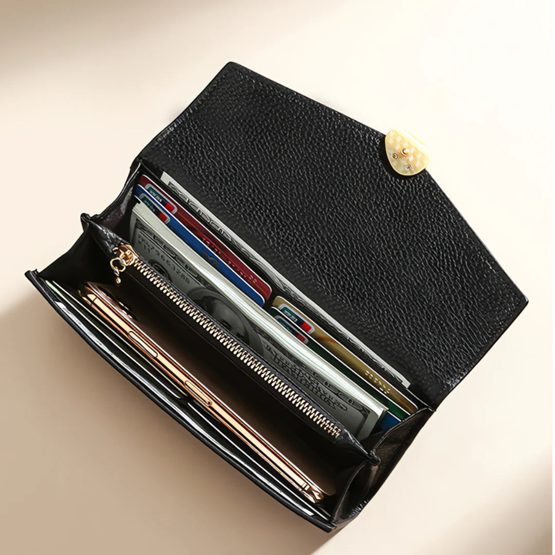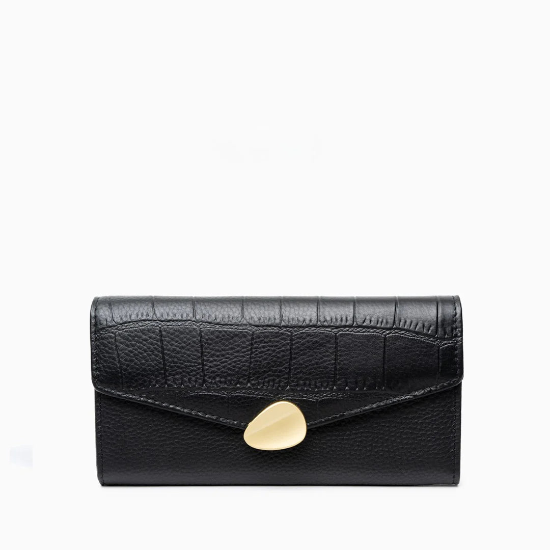 Designed for those who love a blend of elegance and practicality, the Shayne Clutch Bag is more than just a long wallet - it’s a statement of refined style. Crafted from high-quality materials, its textured exterior adds a touch of sophistication, while the sleek, handheld design ensures effortless carry. Inside, you’ll find multiple compartments and dedicated card slots, keeping your essentials perfectly organized. The gold clasp adds a luxe finish, making this clutch as polished as it is practical. Exclusively available in black.