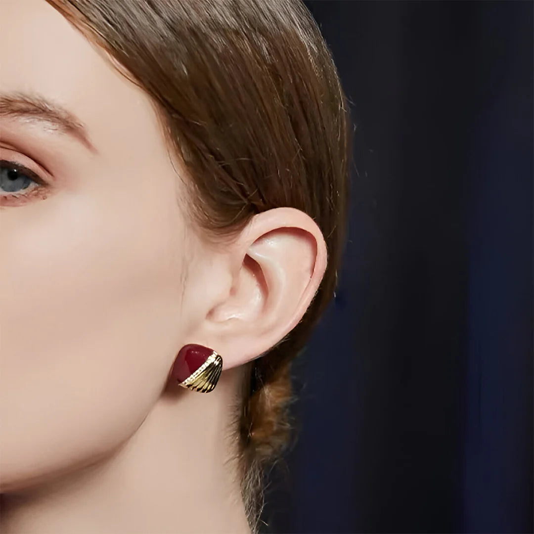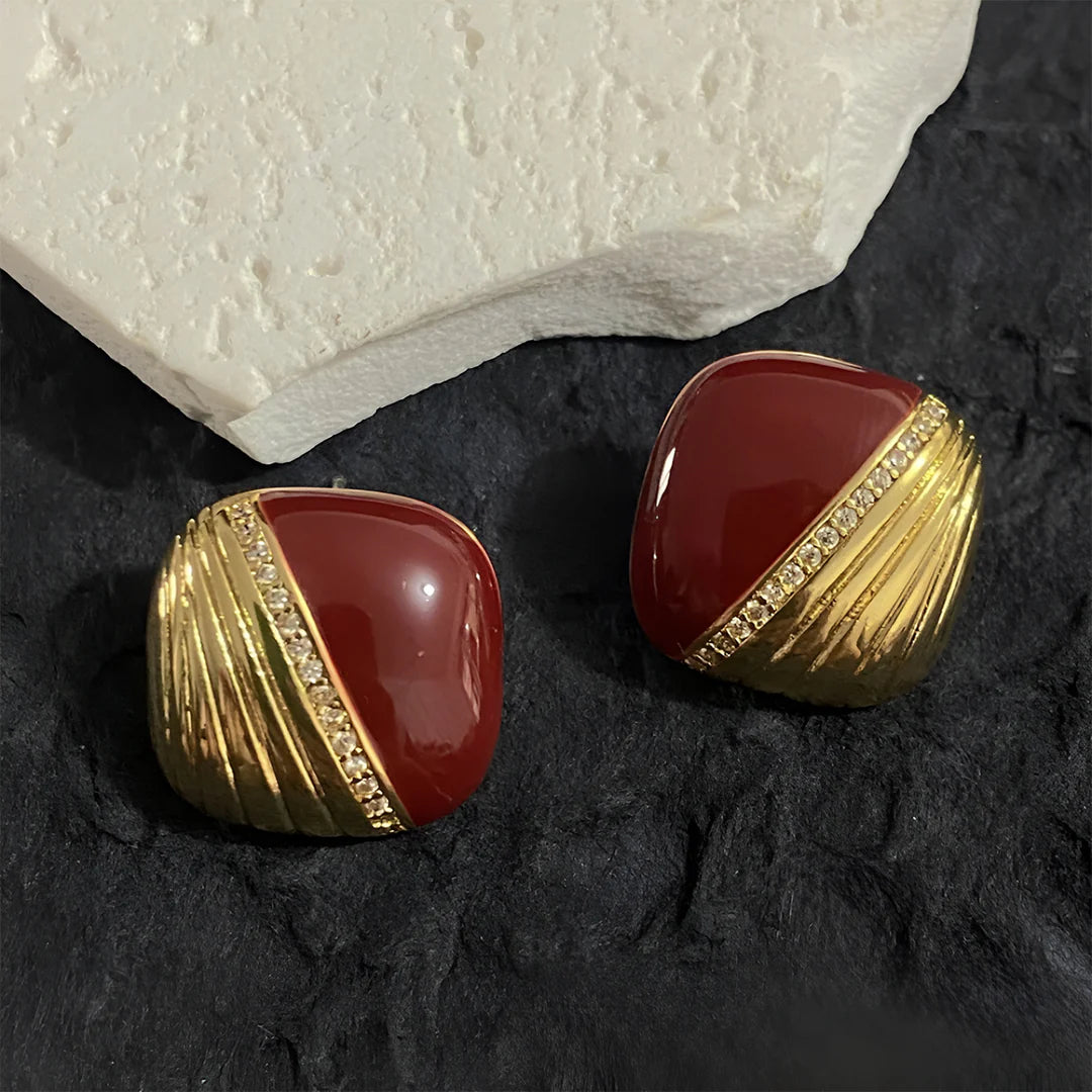 Bold and refined, the Sienna Luxe Studs bring a touch of sculptural elegance to your collection. Their rich enamel finish contrasts beautifully with a rippled, high-shine surface and a line of delicate crystal accents. The curved square silhouette offers a vintage-inspired feel with a contemporary twist. These earrings are perfect for adding depth and dimension to both day and evening looks. Whether paired with a sleek dress or a casual ensemble, they’re sure to make a statement. Lightweight yet impactful, they balance comfort and charm effortlessly.