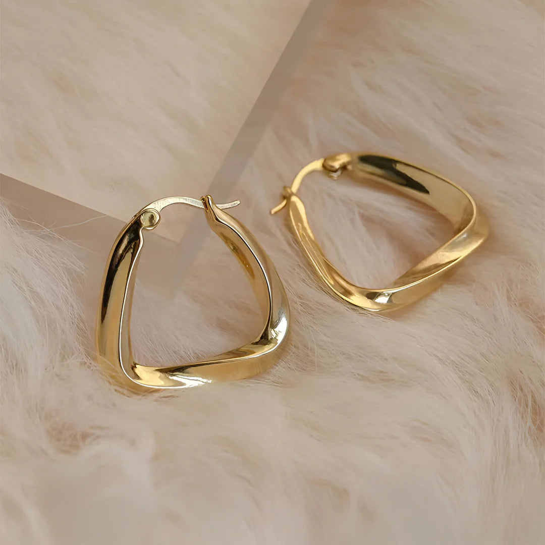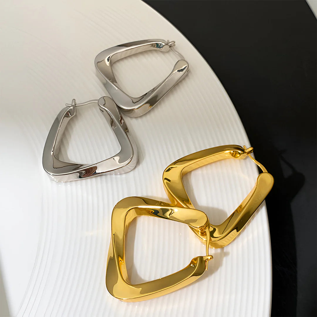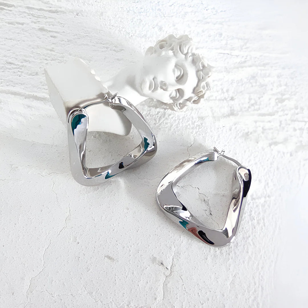 The Sierra Wave Hoop Earrings are a bold twist on modern elegance. Their soft triangular shape and mirror-like silver finish create a fluid, sculptural feel that catches the light with every turn. Designed to make a statement without the weight, they’re perfect for both casual and elevated looks. These hoops are versatile enough to pair with your everyday wardrobe or layered with other Verano Hill favorites for extra flair.