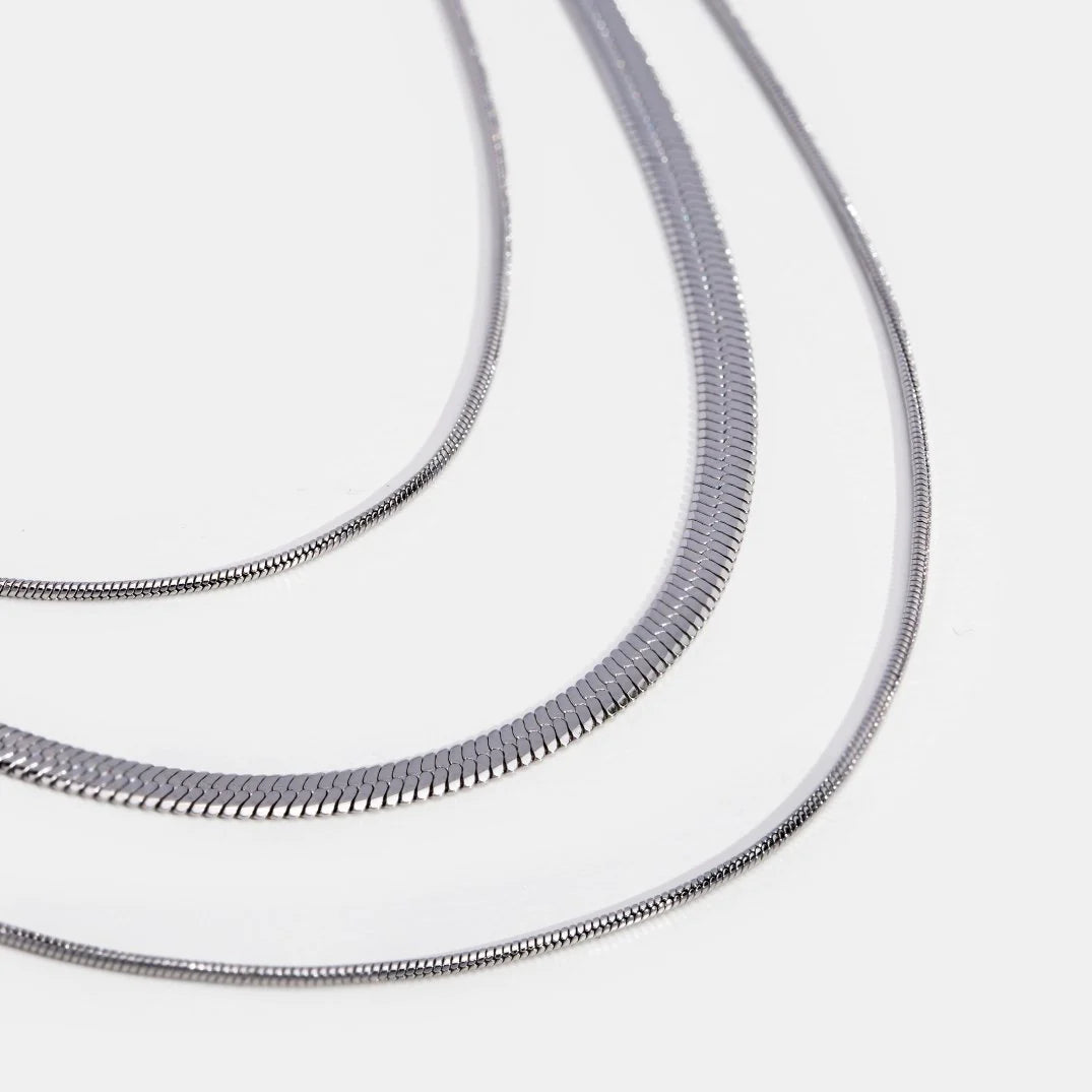 This Silver Multi-Layered Chain Necklace was crafted with elegance in mind. Beautifully designed to complete any outfit, this timeless piece is a must-have.