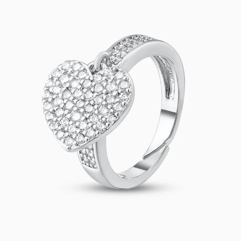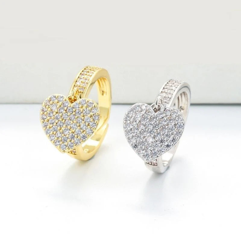 This Sparkling Heart Ring is finely crafted with little cz diamonds, and it sparkles in the light. You can wear it alone, or layer it with other pieces-this elegant design is a versatile addition to your everyday sparkle. Now available in gold and silver. Perfect for any occasion!