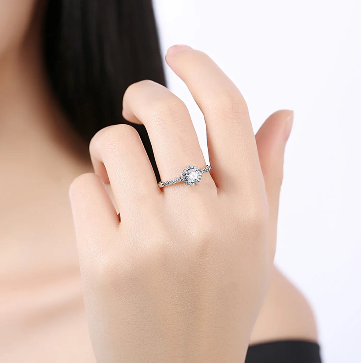 The Verano Halo Ring will make any outfit shine! This beautiful halo ring features 925 sterling silver with sparkles and dazzling cz diamonds. Now exclusively available in silver, wear this ring to add the perfect amount of glamour to any outfit!