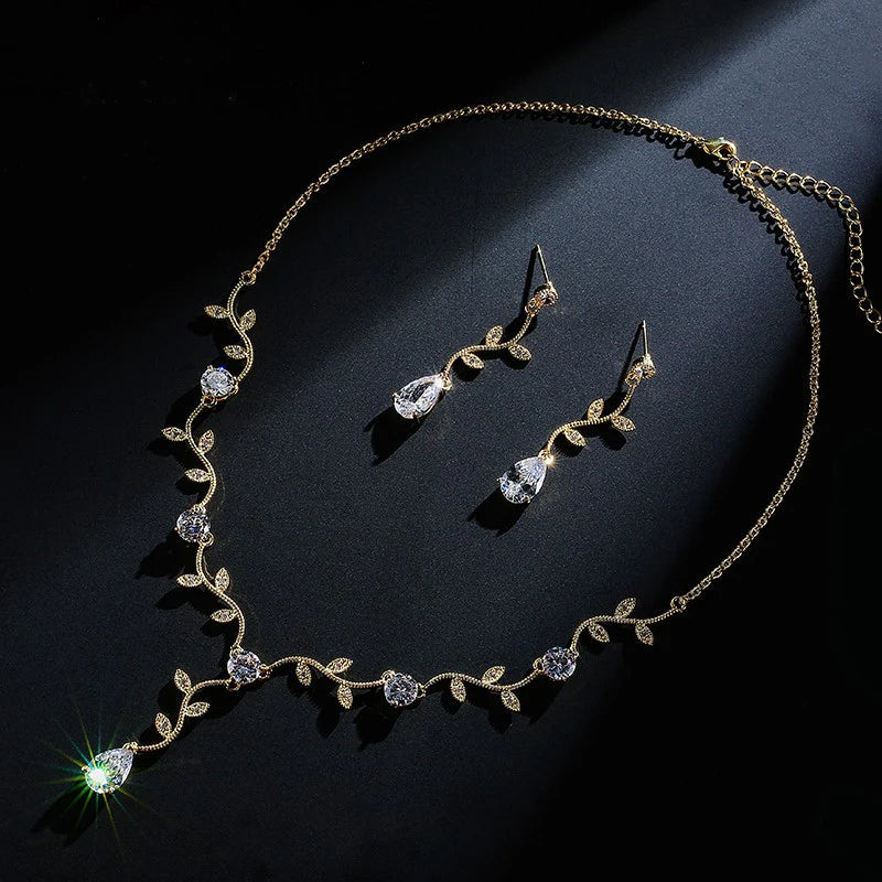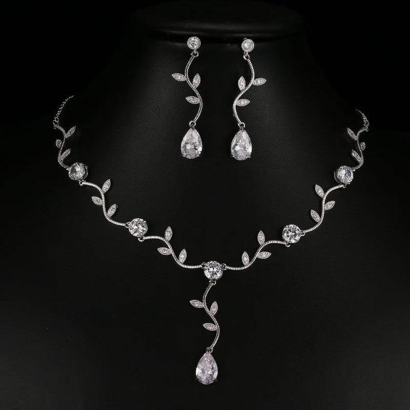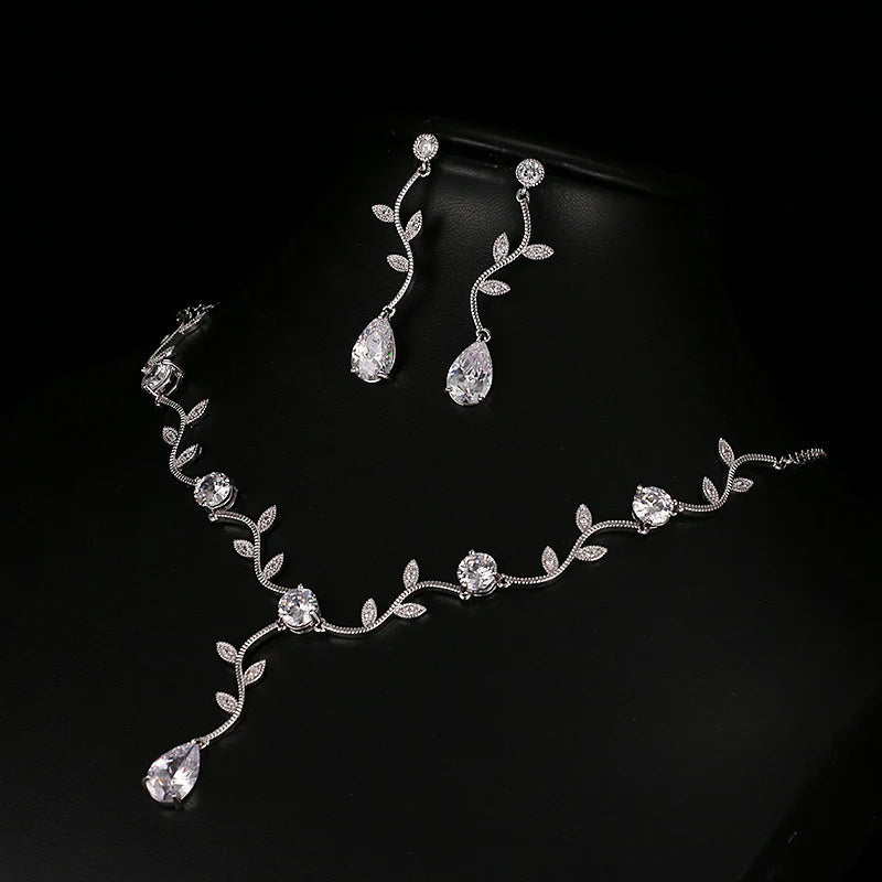 Even without bling, Vine and Stud Sparkle Jewelry Set is dazzling on its own. Our jewelry set combines genuine gemstones and high-quality metals with sparkling zirconia crystals to create luxurious, sensational products that capture the beauty of nature's splendor. This necklace and earrings were designed to look like sparkling vines and will shine amidst your natural surroundings.