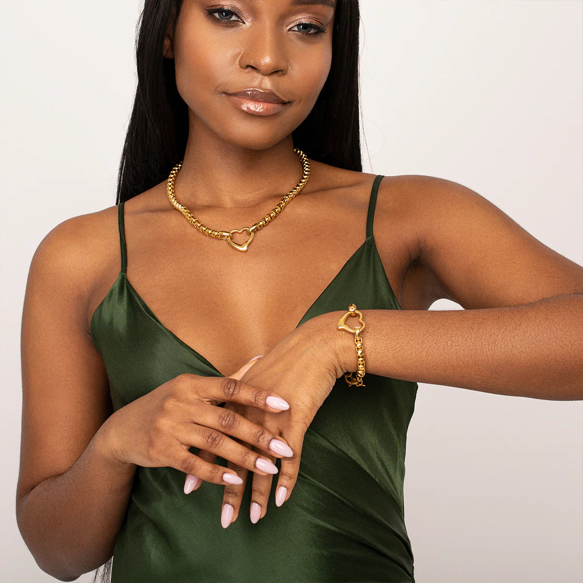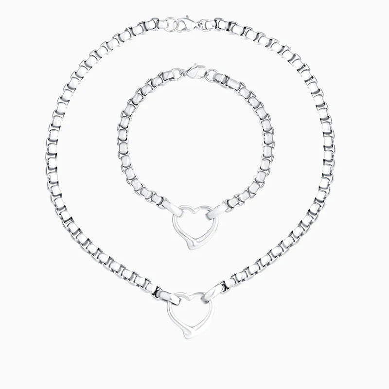 Add some vintage flair to your everyday wardrobe with this heart pendant jewelry set! Crafted from stainless steel, this necklace and bracelet set has maximum durability, is comfortable to wear and does not tarnish! Now available in gold and silver.